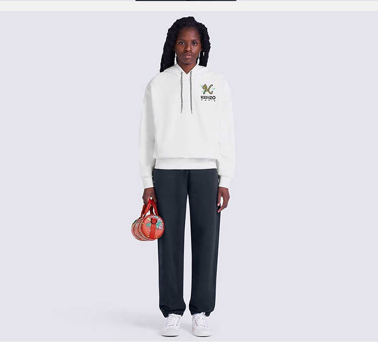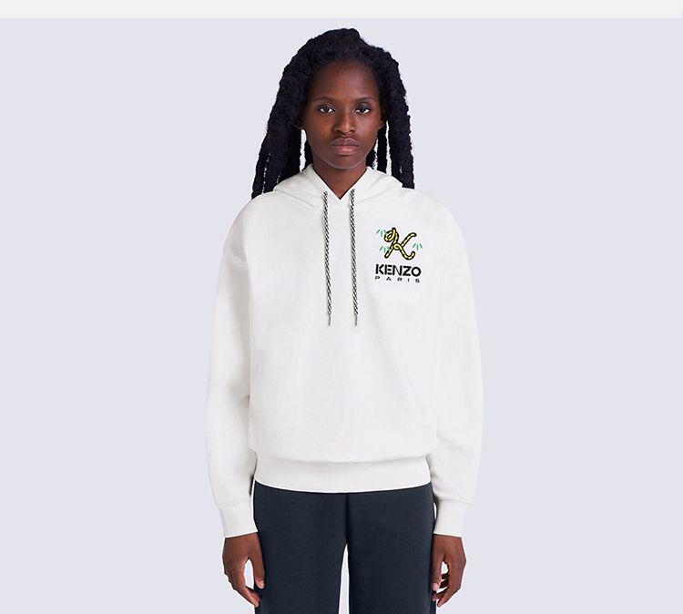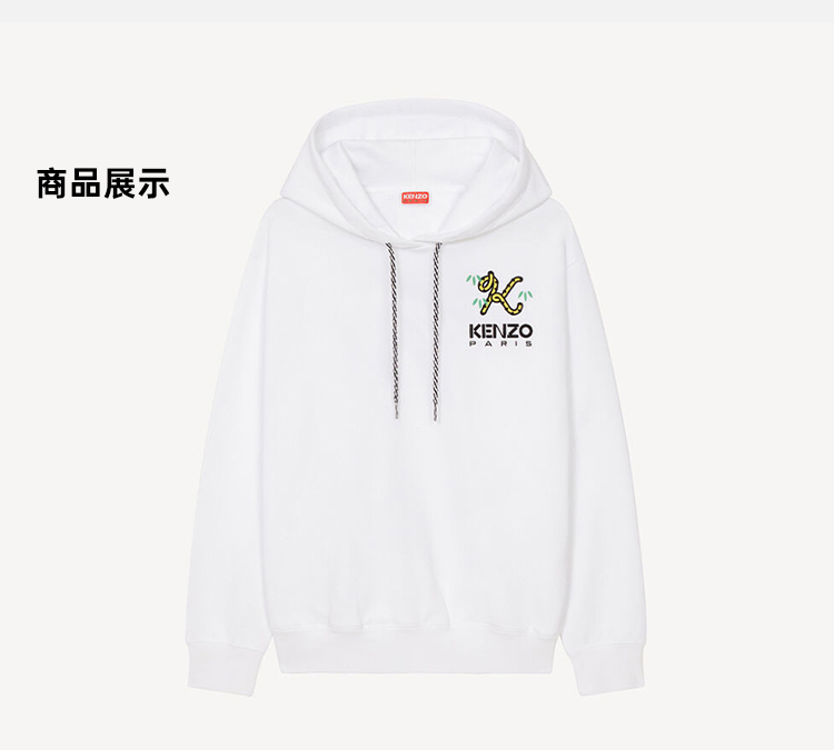 KENZO 高田贤三 女士棉质 TIGER TAIL K 徽标刺绣连帽长袖卫衣 白色 FC62 SW014 4MF 01