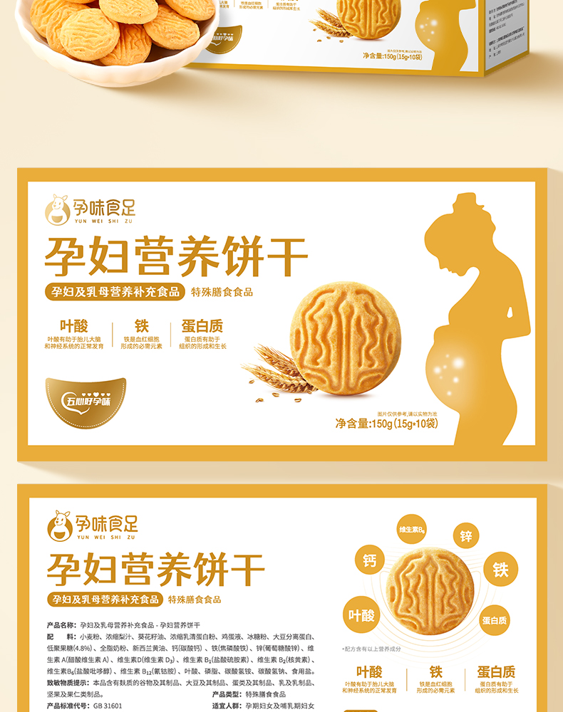 孕味食足孕妇吃的营养叶酸饼干孕期专用解馋抗饿小零食品健康代餐