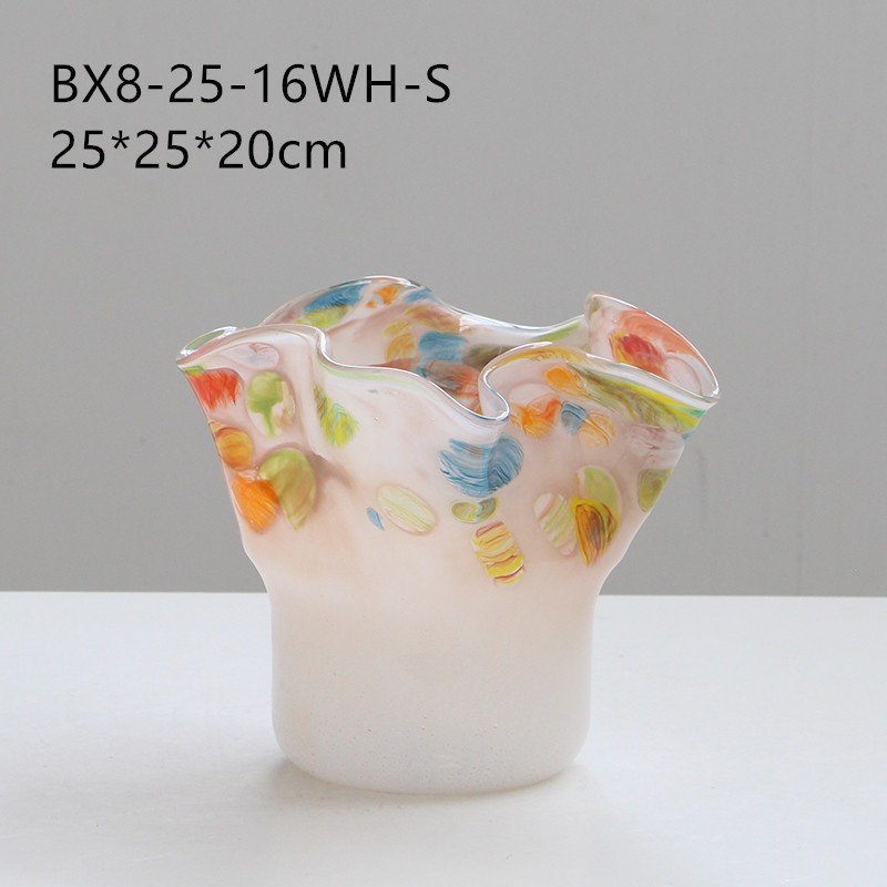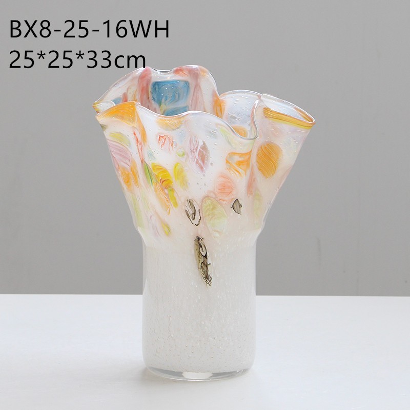 法式中古敞口不规则渐变玻璃插花瓶摆件家居客厅餐桌玄关创意装饰
