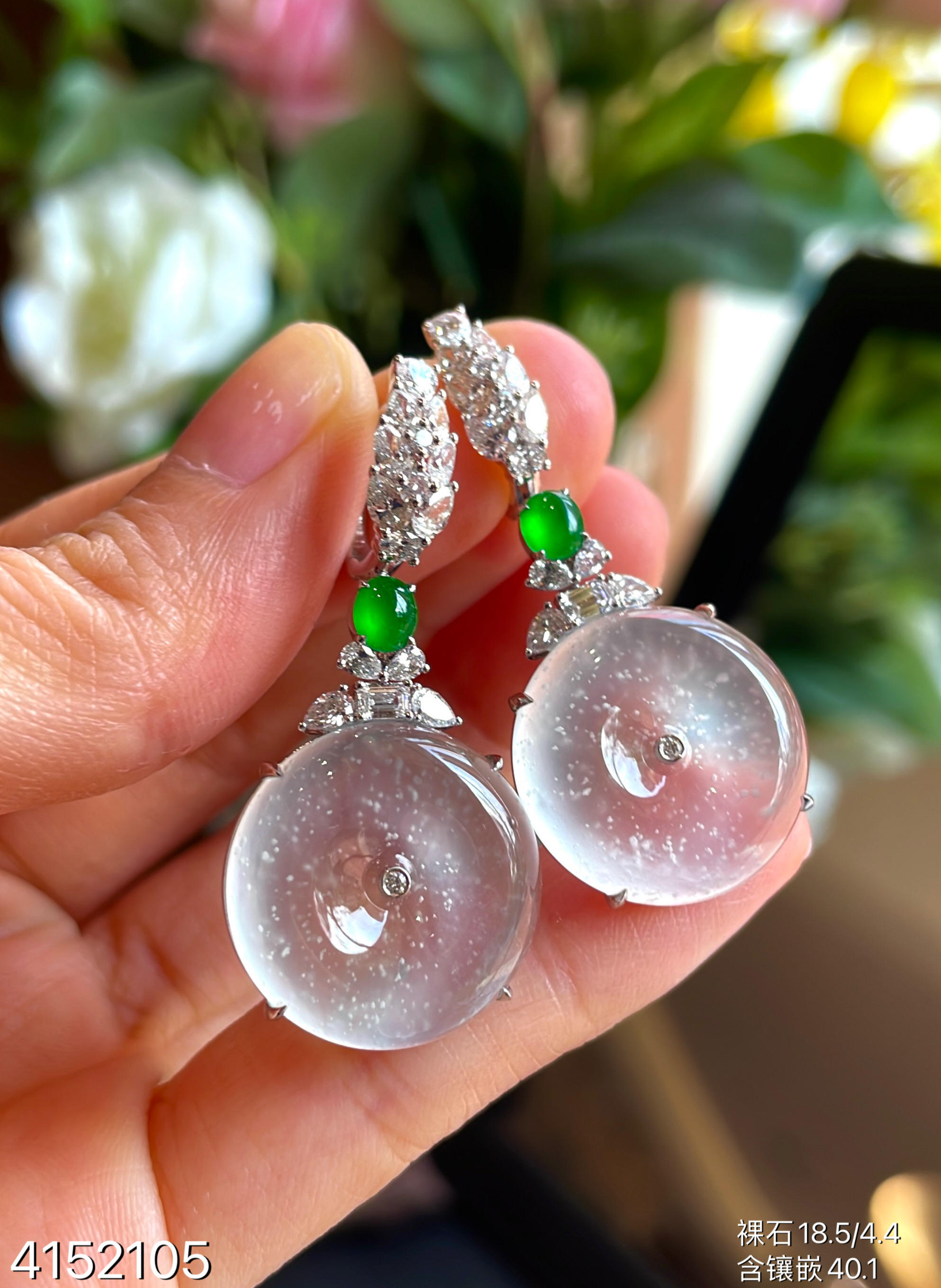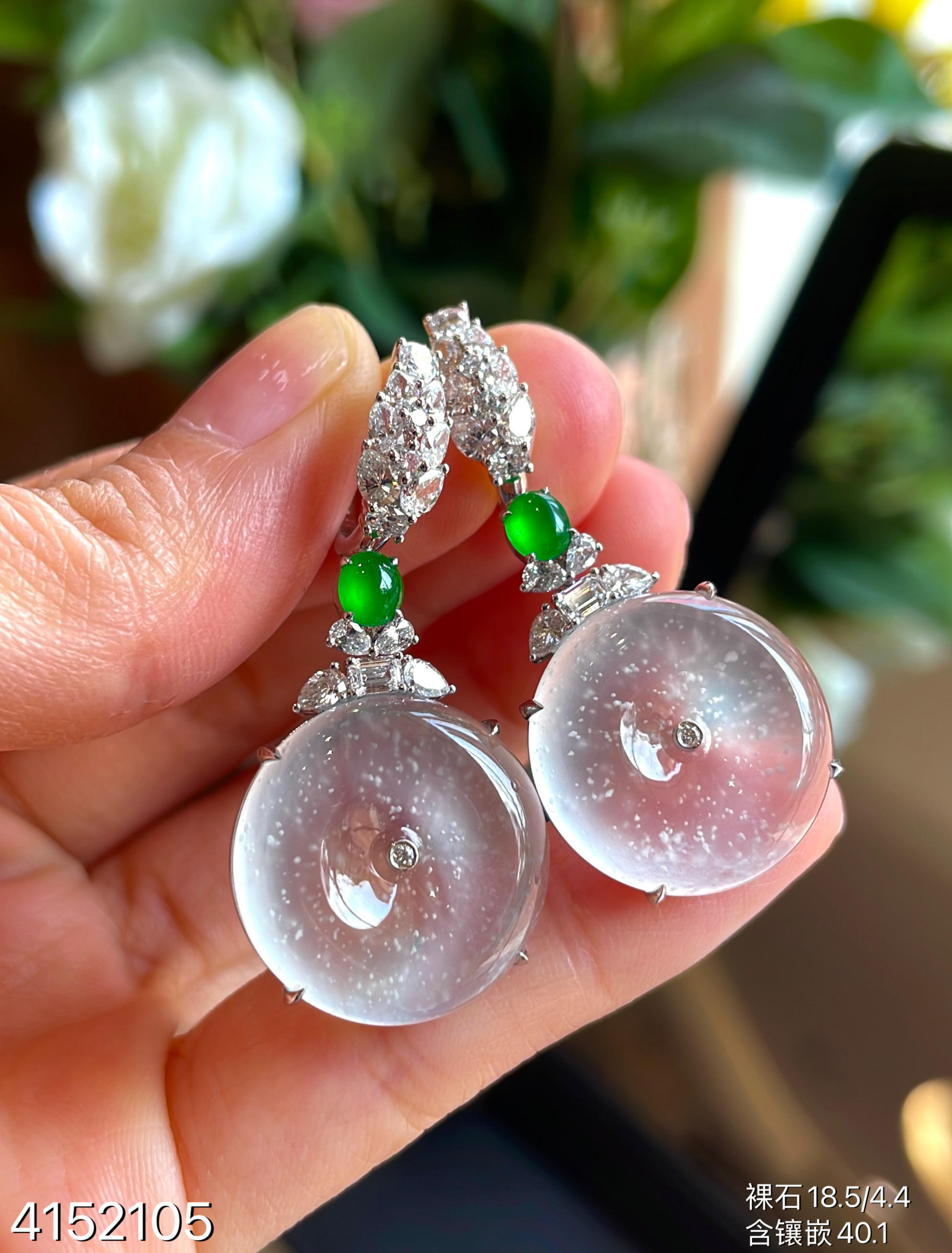玻璃种木那平安扣耳坠【4152105】具体价格微信咨询