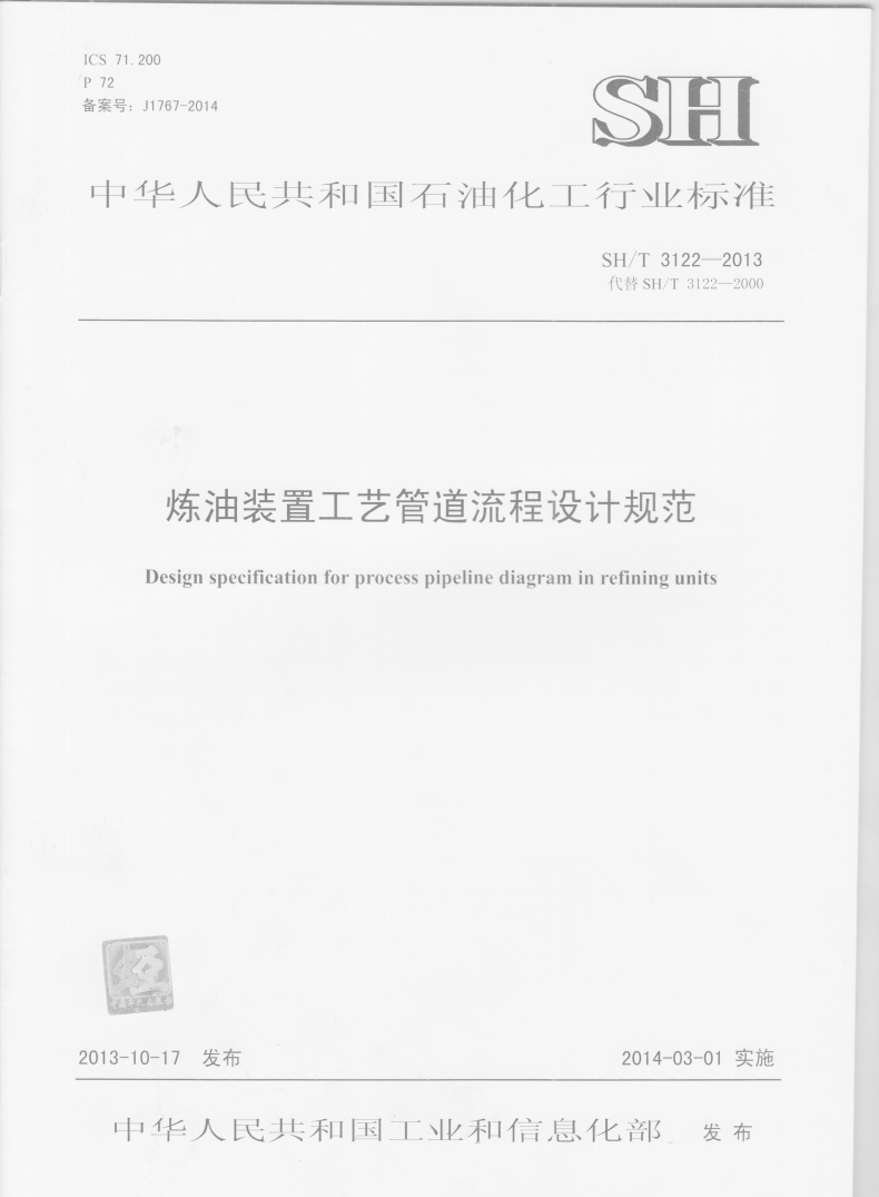 书名:SH/T 3122-2013 炼油装置工艺管道流程设计规范