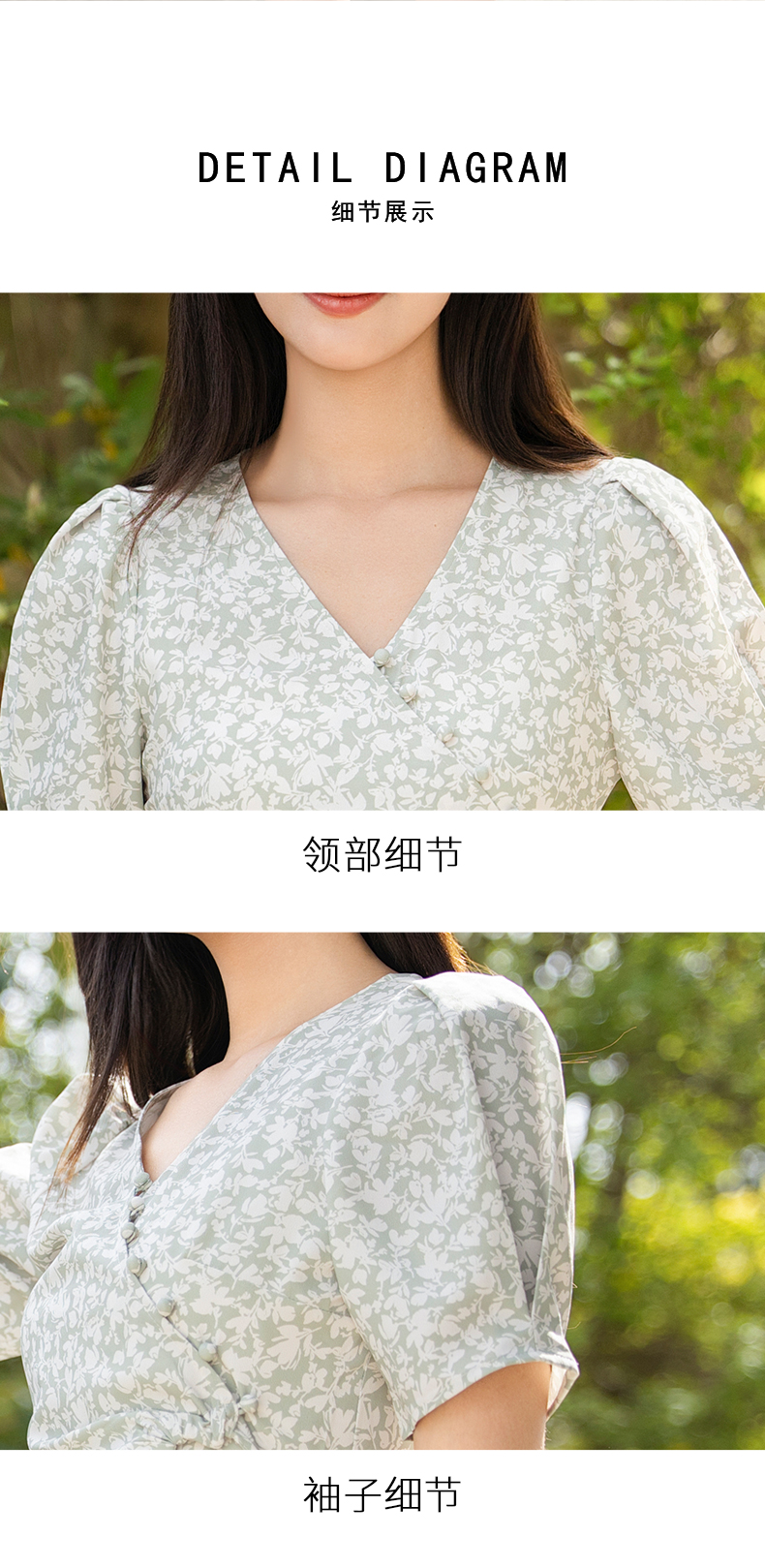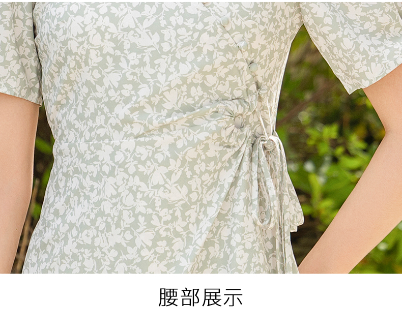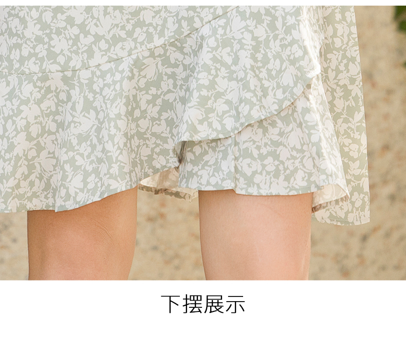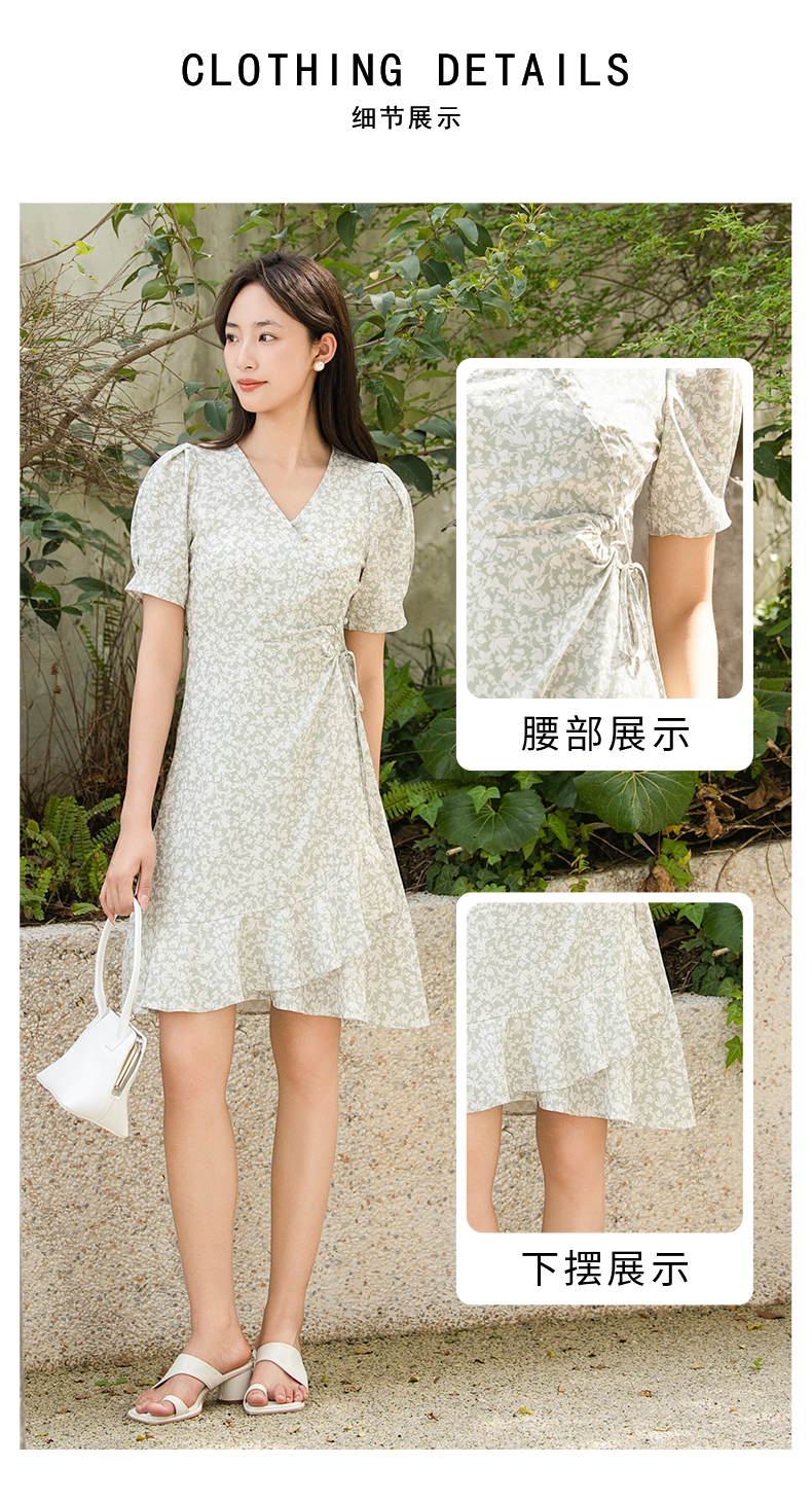 NUTS夏季新款时尚仙气风绿色碎花连衣裙女428101518