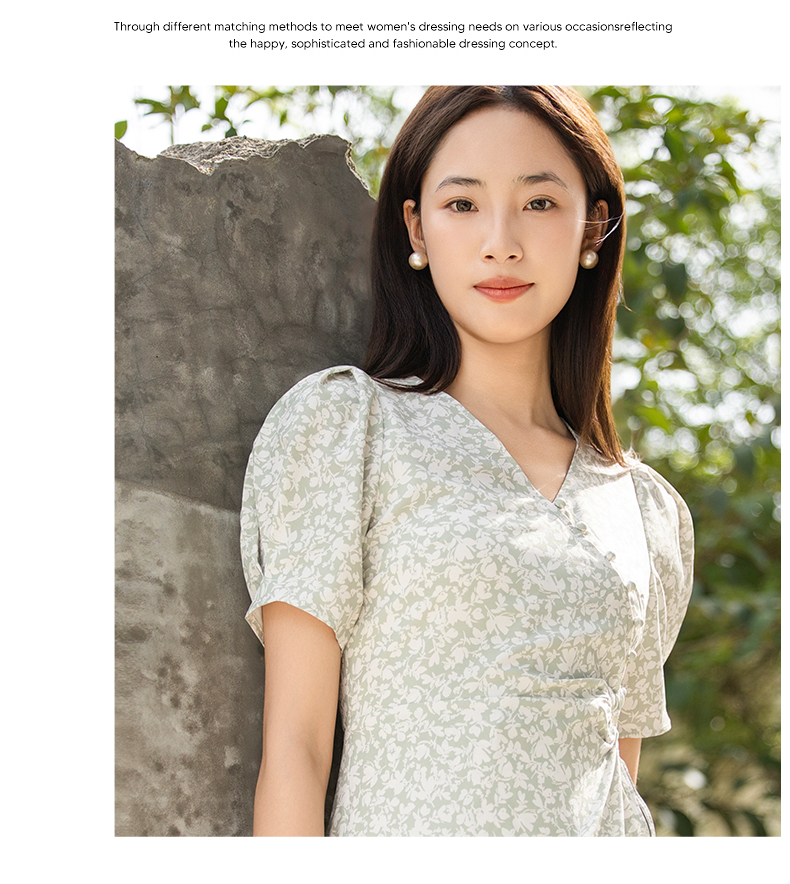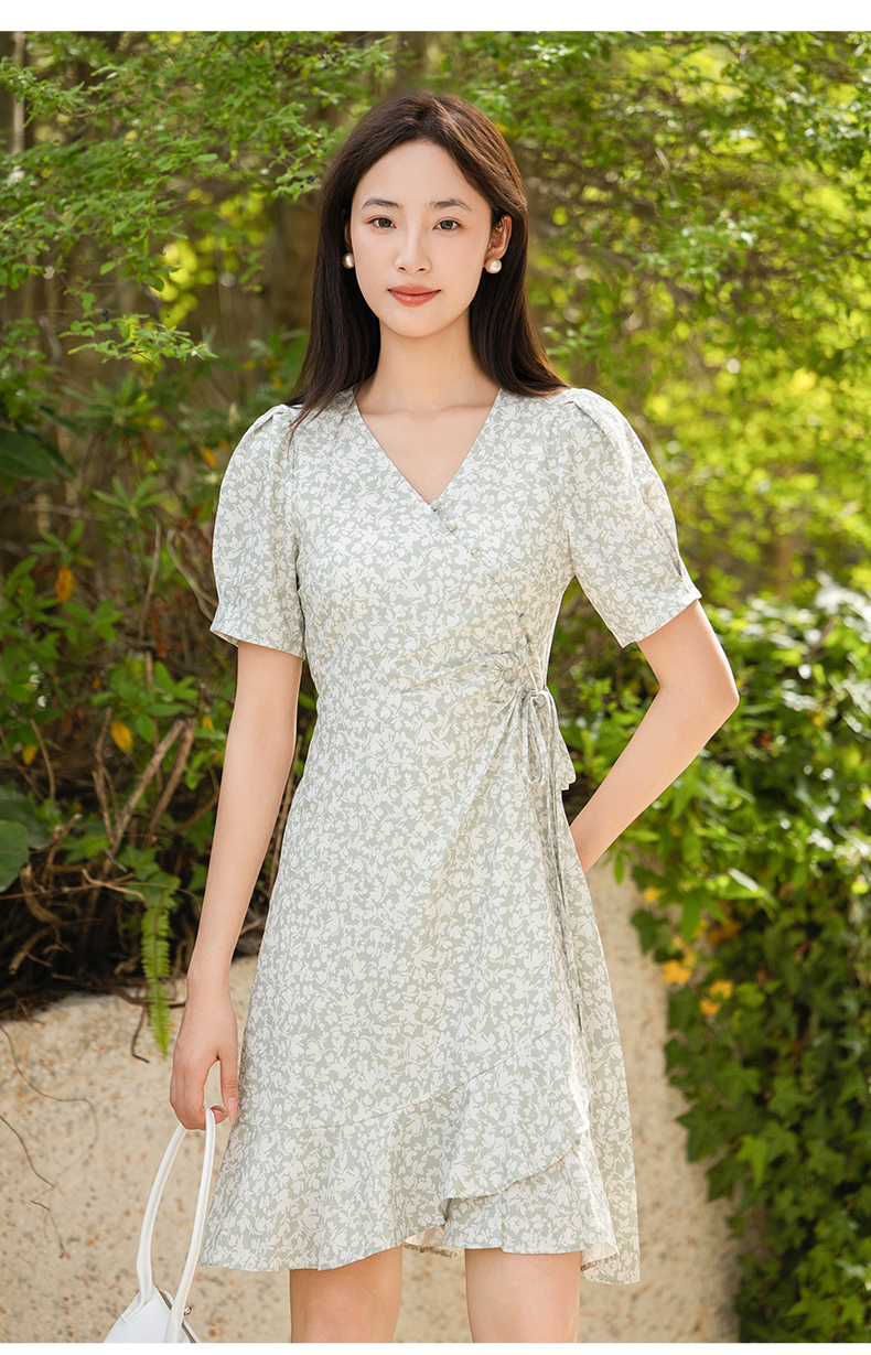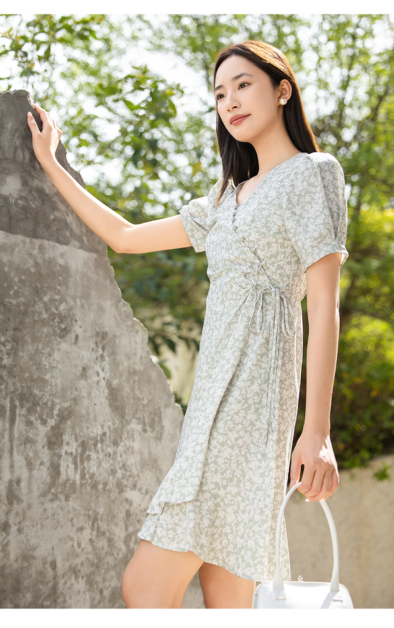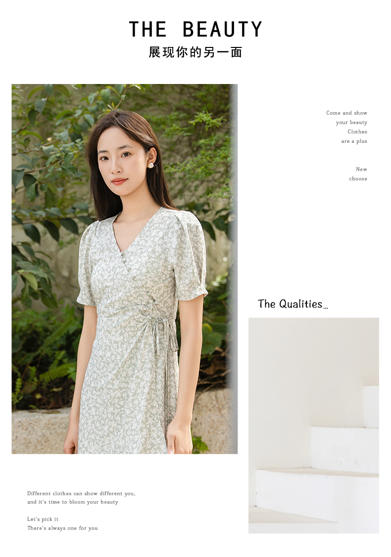 NUTS夏季新款时尚仙气风绿色碎花连衣裙女428101518