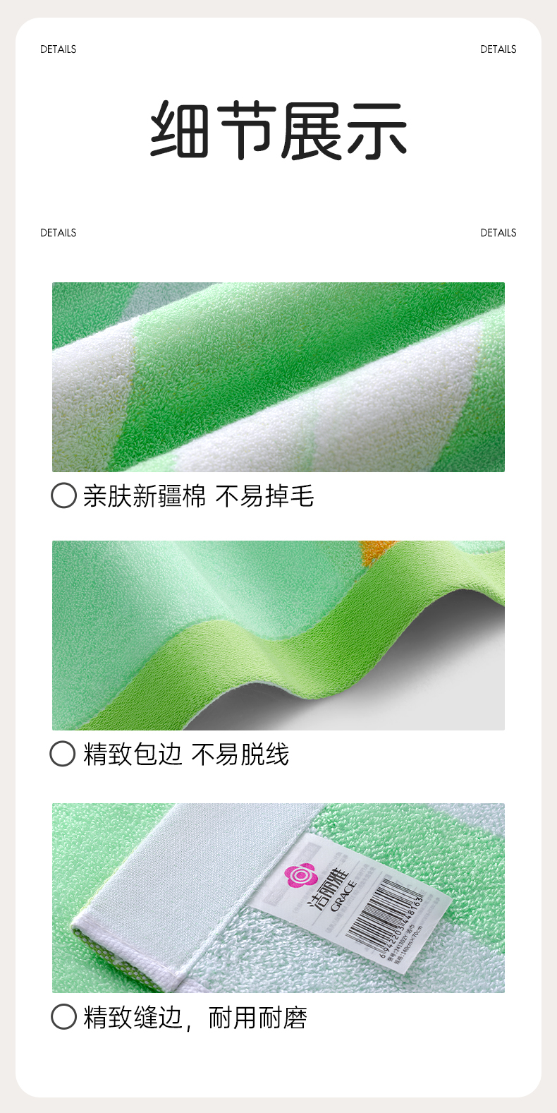 【5A抗菌毛巾2条装】 纯棉不掉毛 柔软全棉吸水加厚面巾