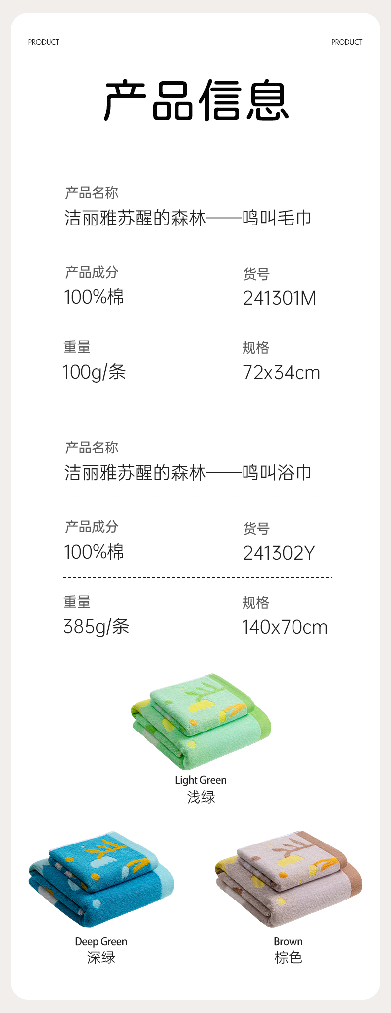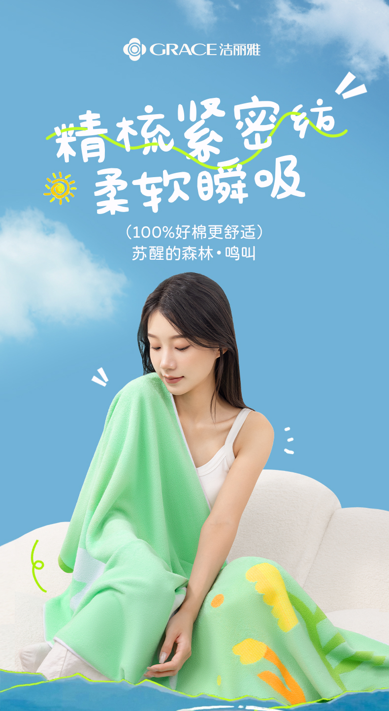 【棉疆溯源】洁丽雅纯棉毛巾浴巾家用森林系列亲肤吸水柔软加厚成人