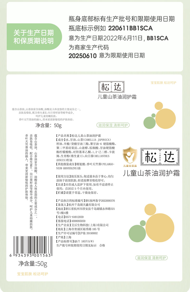 松达山茶油儿童面霜宝宝面霜50g秋冬换季补水保湿滋润霜润肤乳/SD-01563