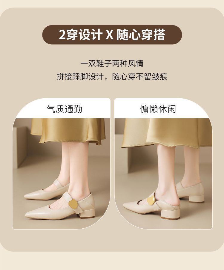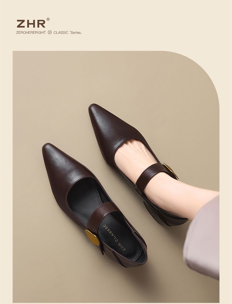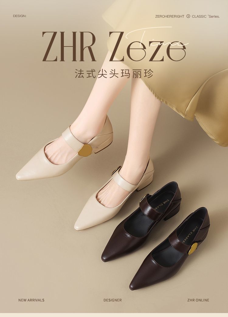 ZHR则则尖头玛丽珍鞋2025新款气质爆款法式单鞋高级女鞋一鞋两穿