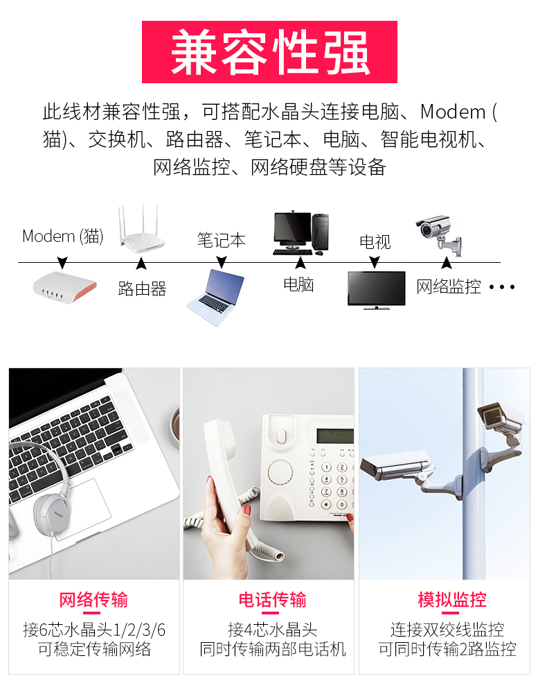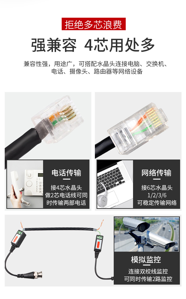 爆 款【四芯网线】室内外4芯线信号线电话线户外宽带线网络线延长线监控纯铜4芯双绞纯铜电话线/网线工程家装用四芯连接线监控网络线宽带双绞线4芯纯铜500米监控网线