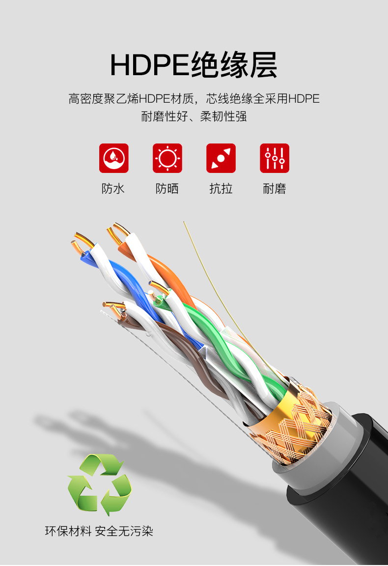 商品名称:室外六类双屏蔽【监控加粗款0.55无氧铜线芯】CAT6安防监控布线之选POE供电监控 道闸 车牌识别家装网络布线监控箱线足300米 【六类千兆双屏蔽】传输稳定不掉线!! 【优质铜芯】