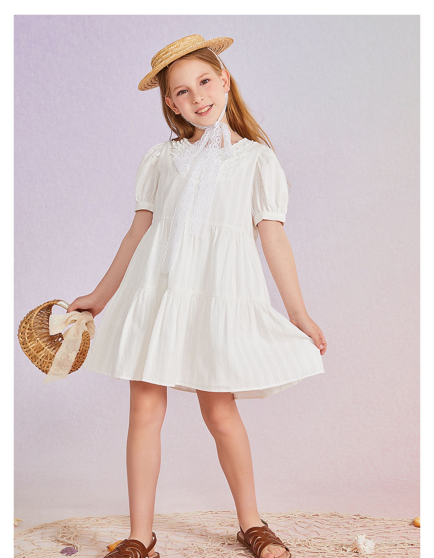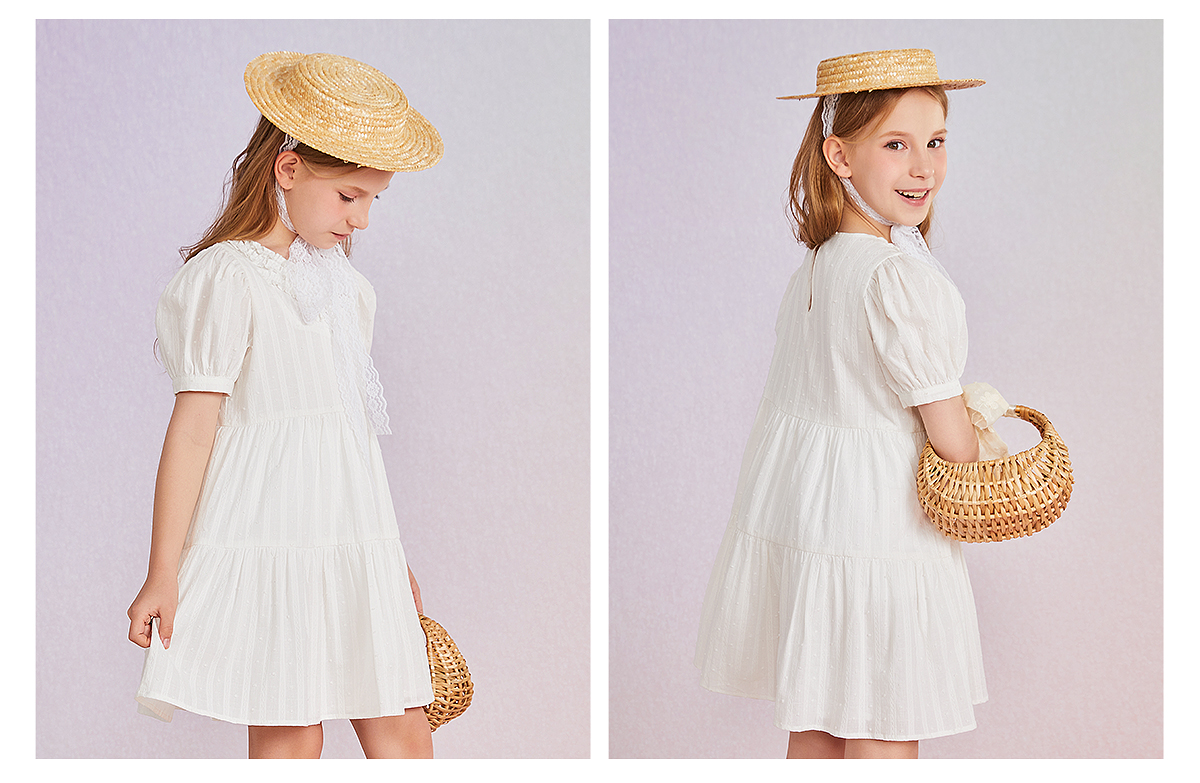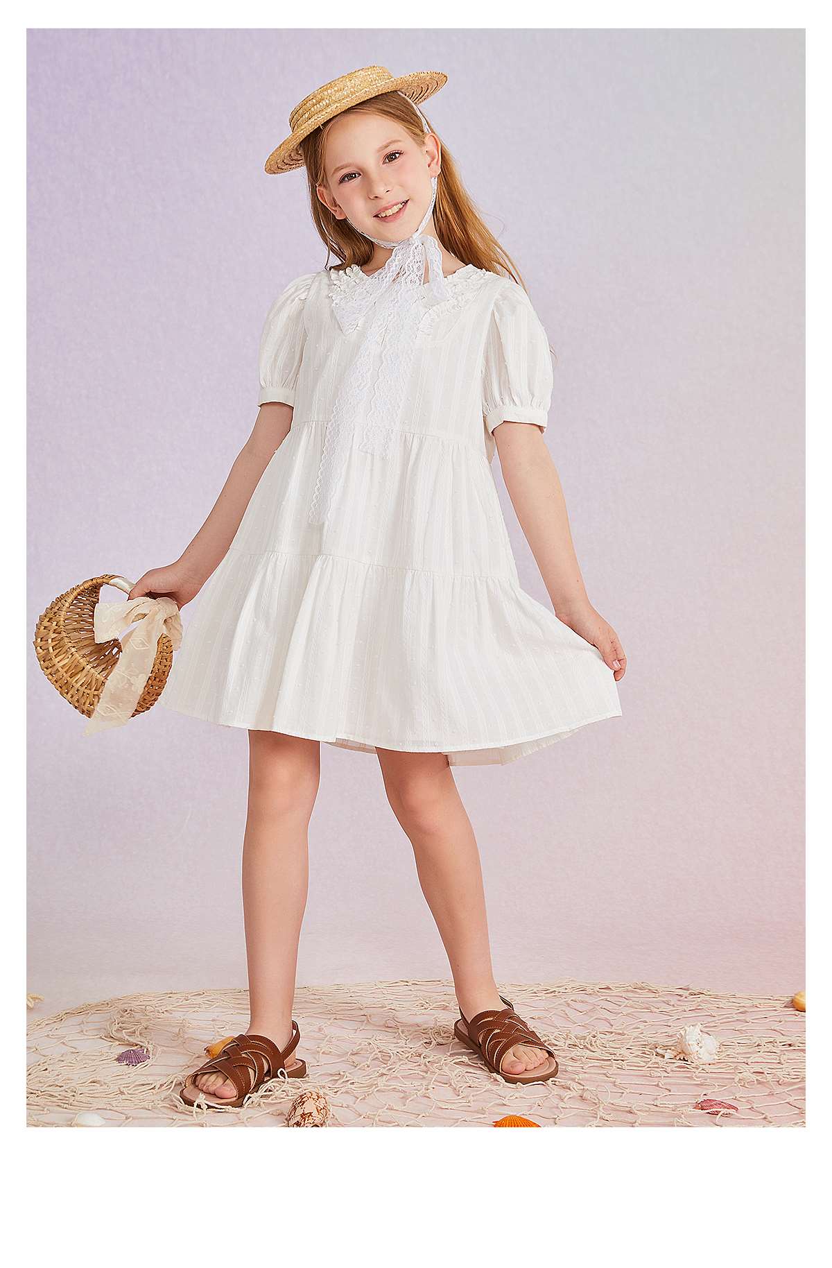 littletime女童白色纯棉连衣裙夏季2022新款韩版洋气儿童蛋糕裙