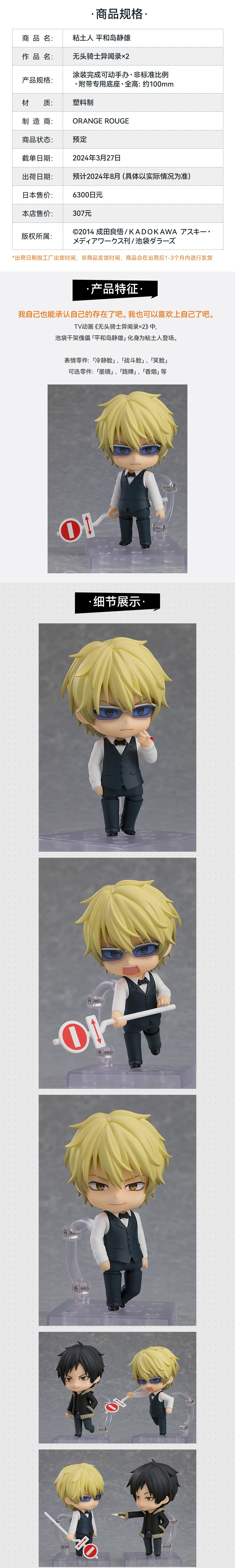 【GSC现货】粘土人 平和岛静雄 无头骑士异闻录×2