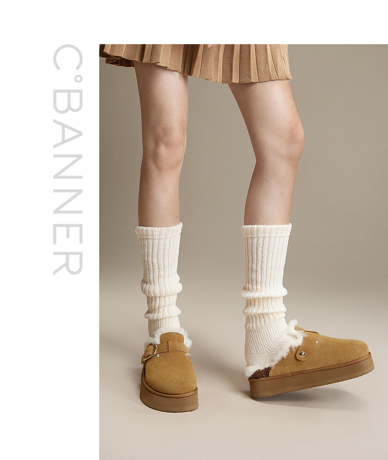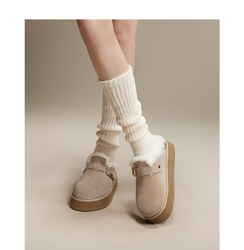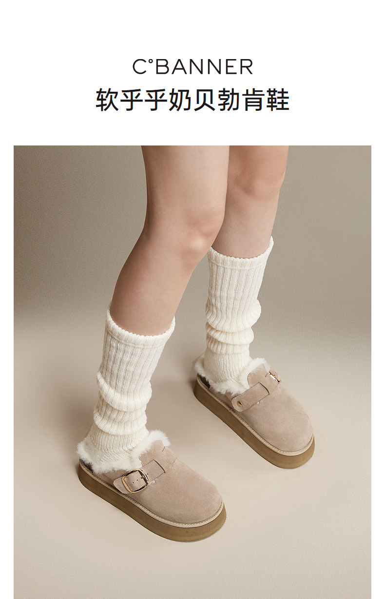 千百度经典通勤乐福鞋女款厚底黑色一脚蹬JK小皮鞋A25163720