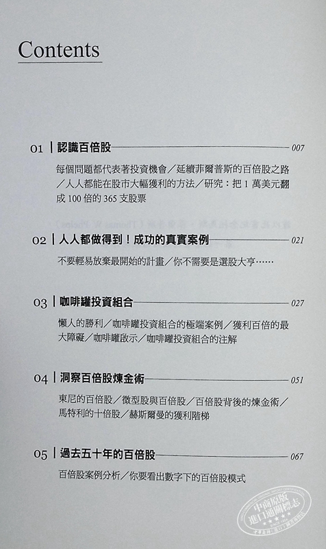15篇章穩紮穩打長期獲利觀念,分享一系列選股技巧與洞見培養,並總結百倍股精華十大原則,幫助讀者從股票和投資中獲利更多。