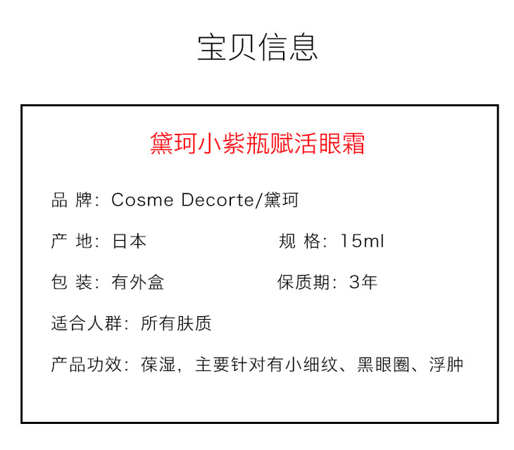 【现货】Decorte 黛珂 小紫瓶 高浓度保湿赋活眼霜15ML