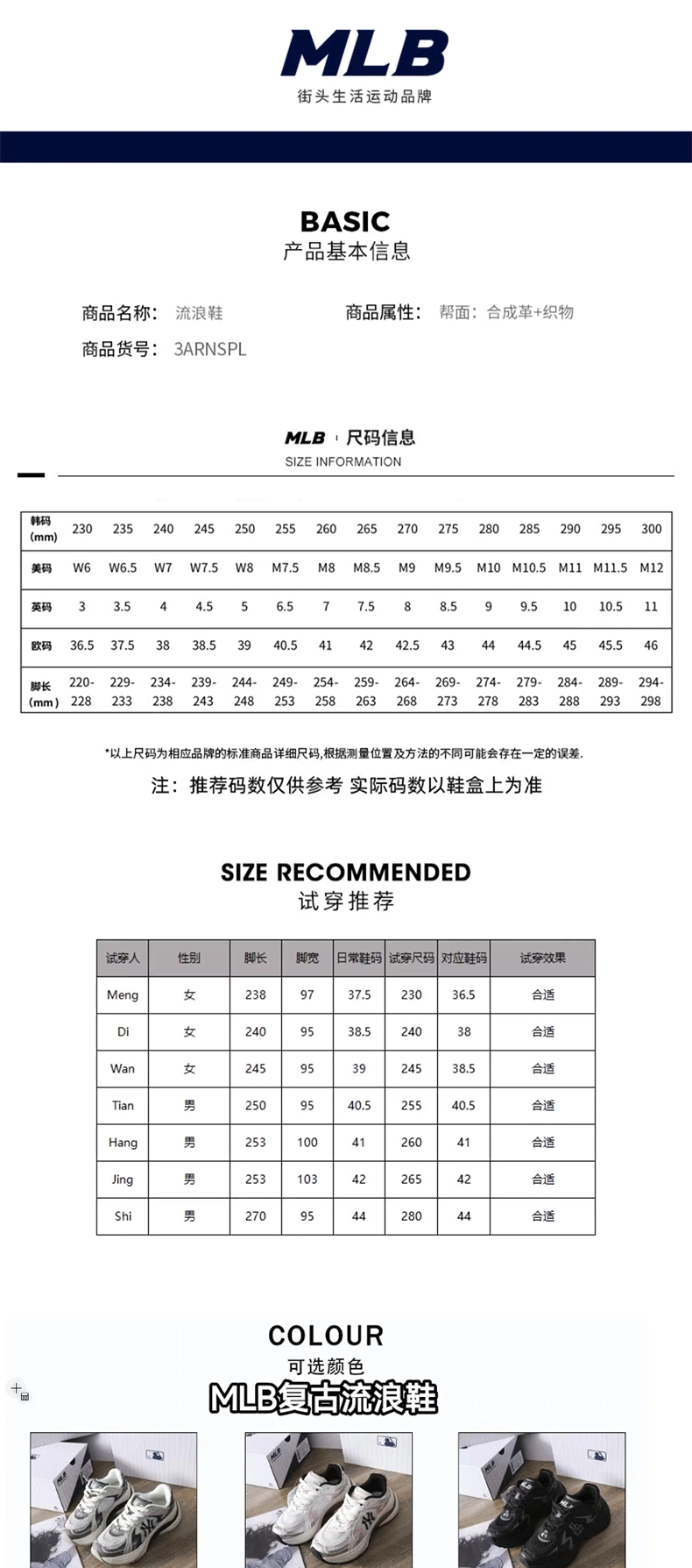 下单送1双袜子款式随机【MLB复古流浪鞋】MLB情侣复古流浪鞋时尚老爹鞋春夏新款欣欣子同款