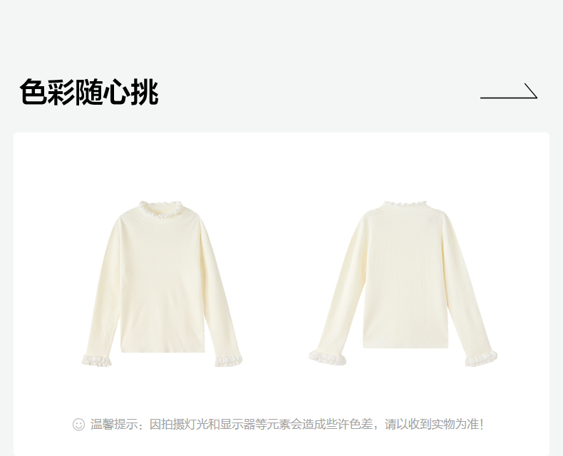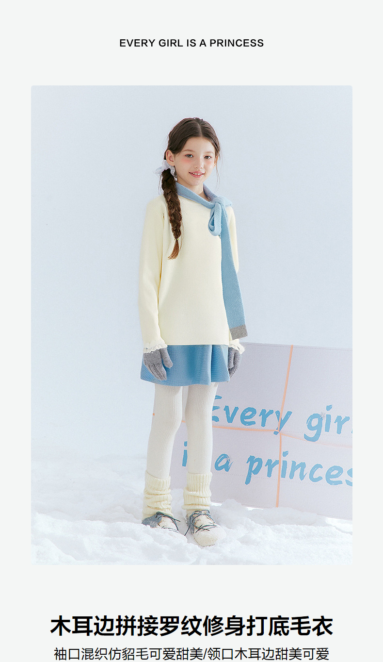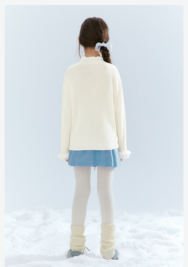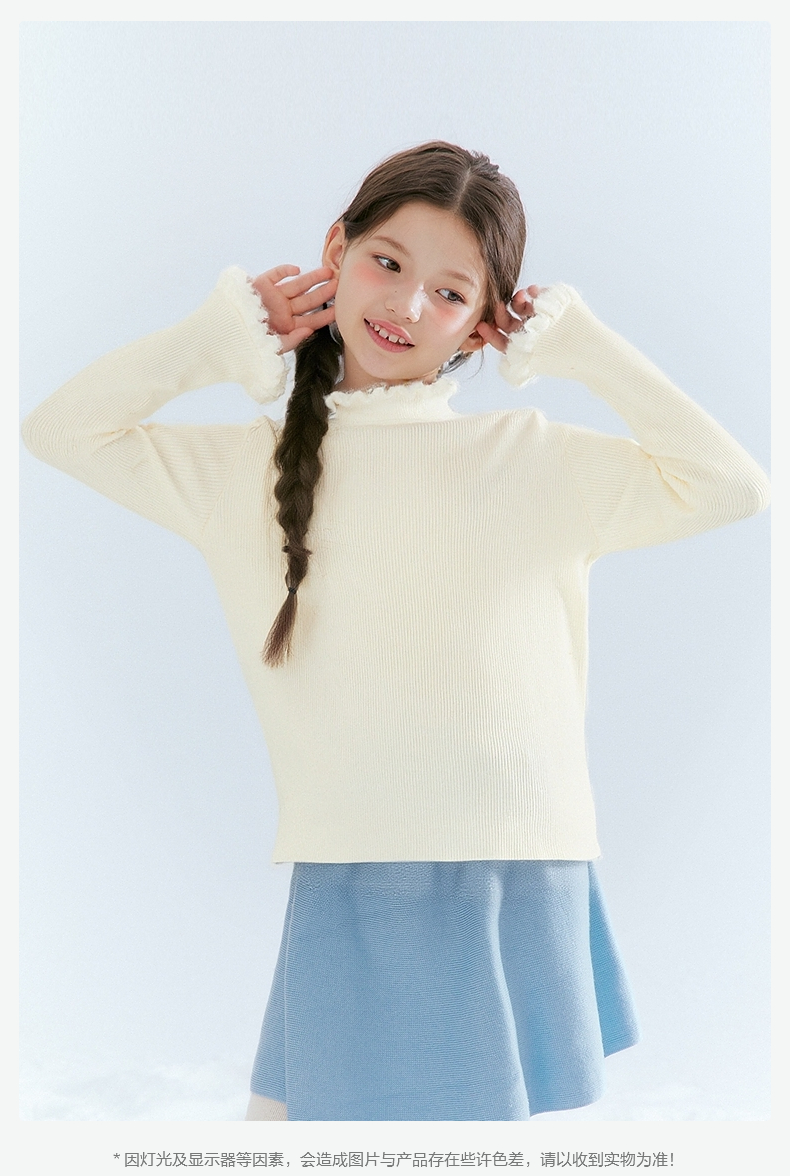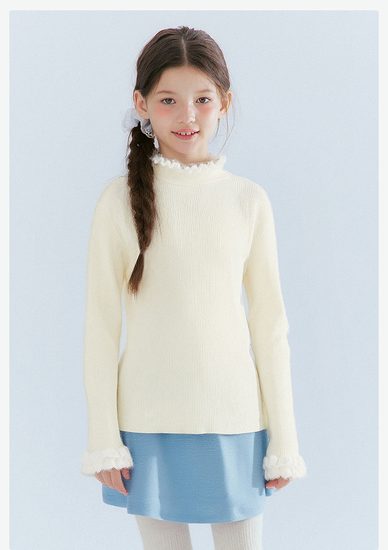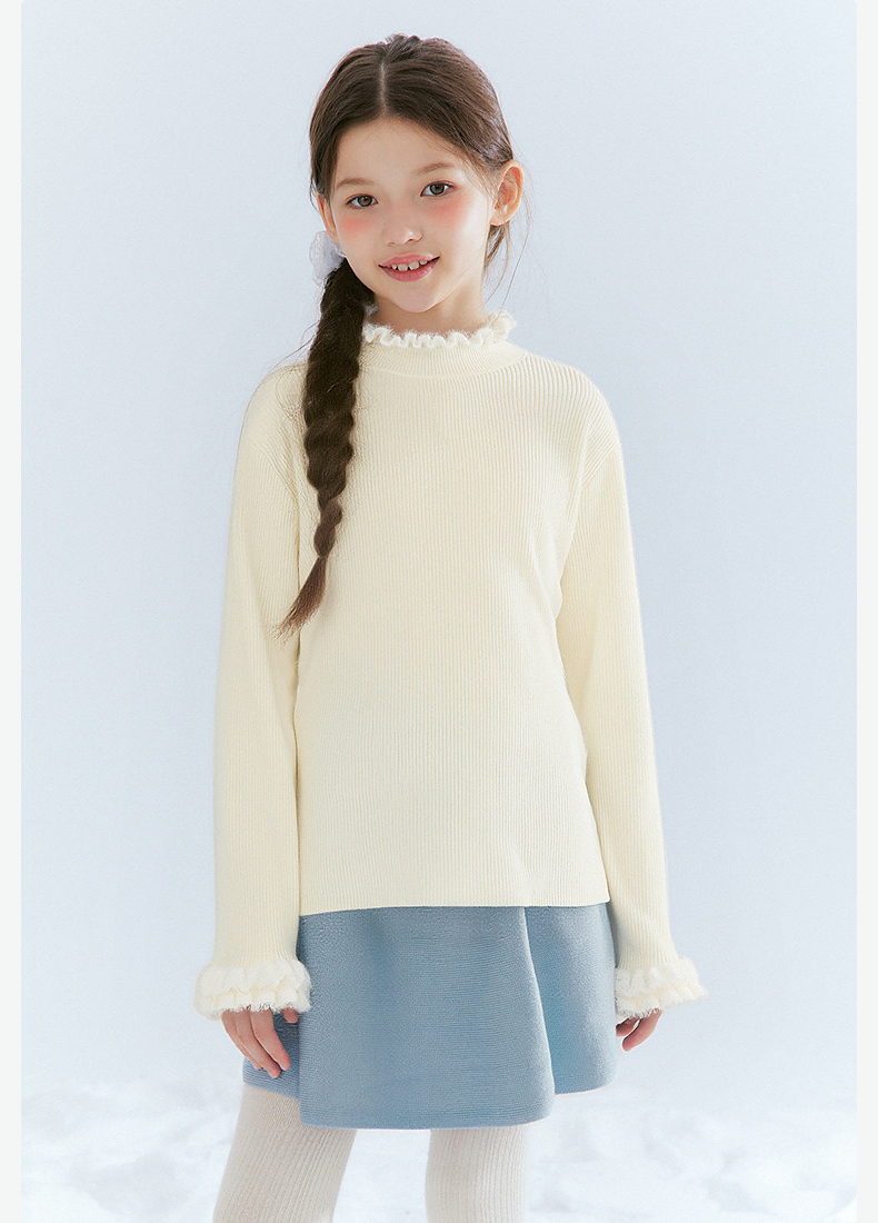 笛莎Deesha 童装女童毛衣2025冬新款女童木耳边拼接罗纹修身打底毛衣