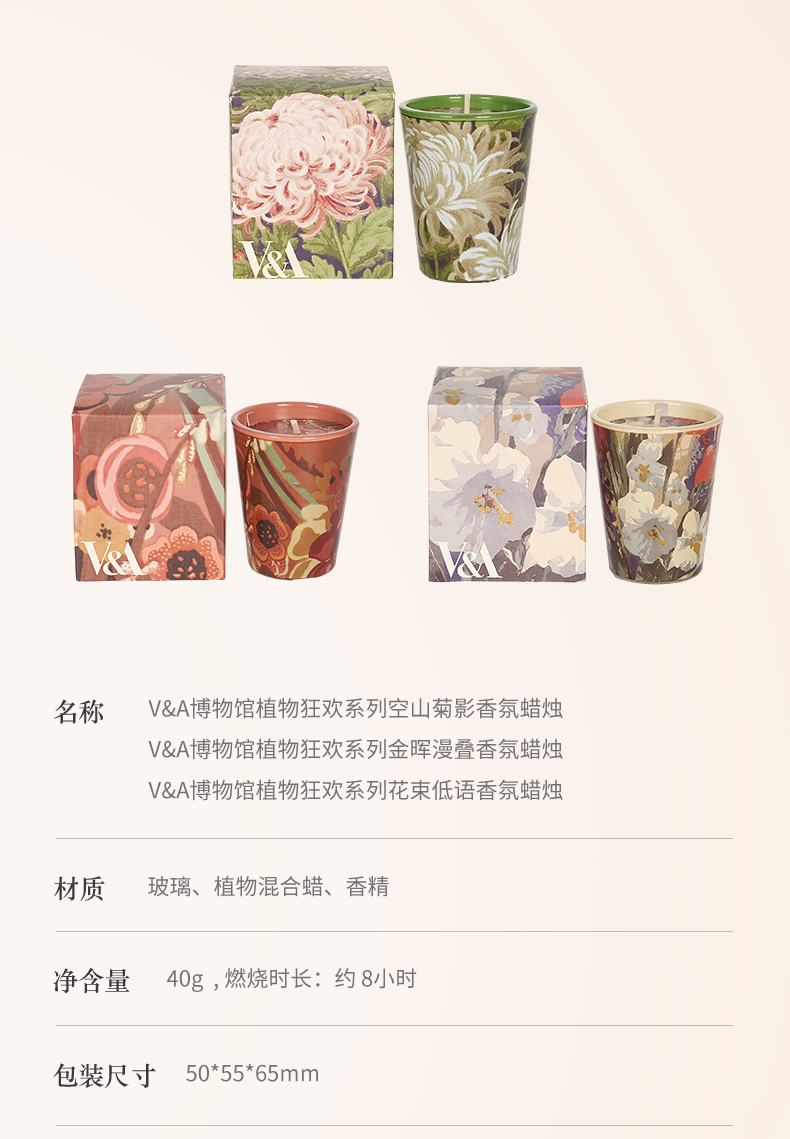 V&A博物馆 植物狂欢系列 空山菊影 金晖漫叠 花束低语 香氛蜡烛