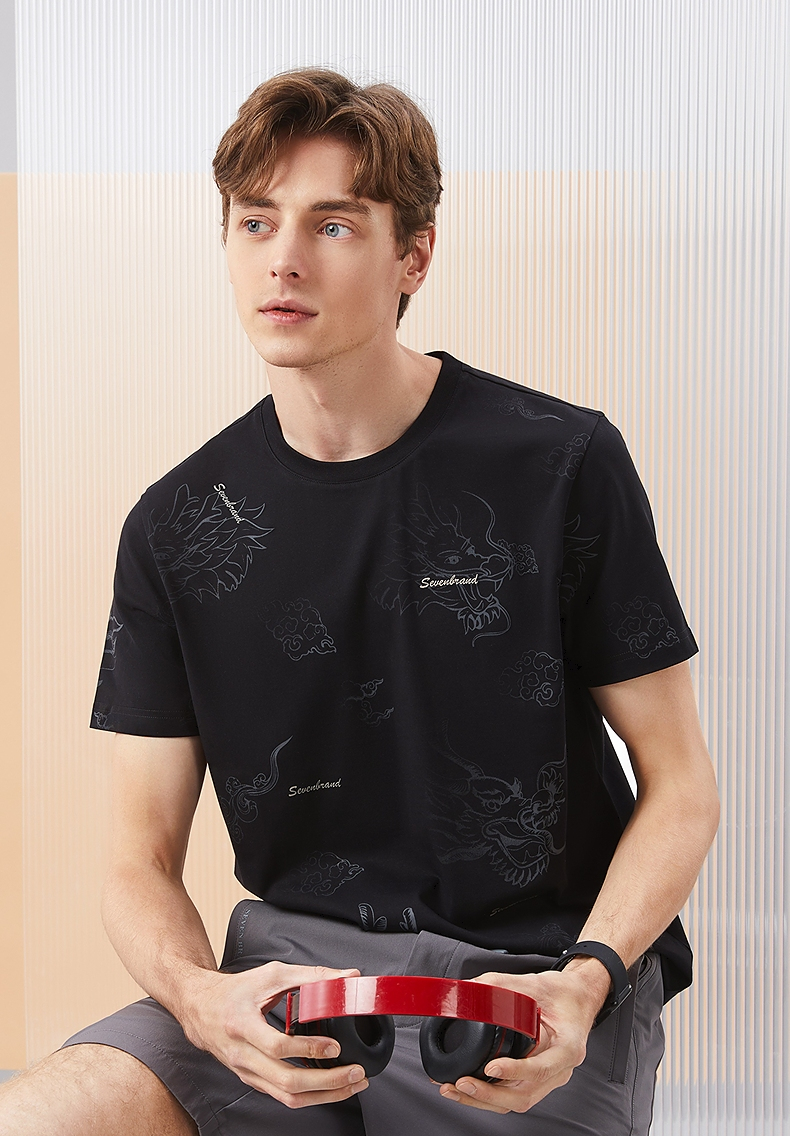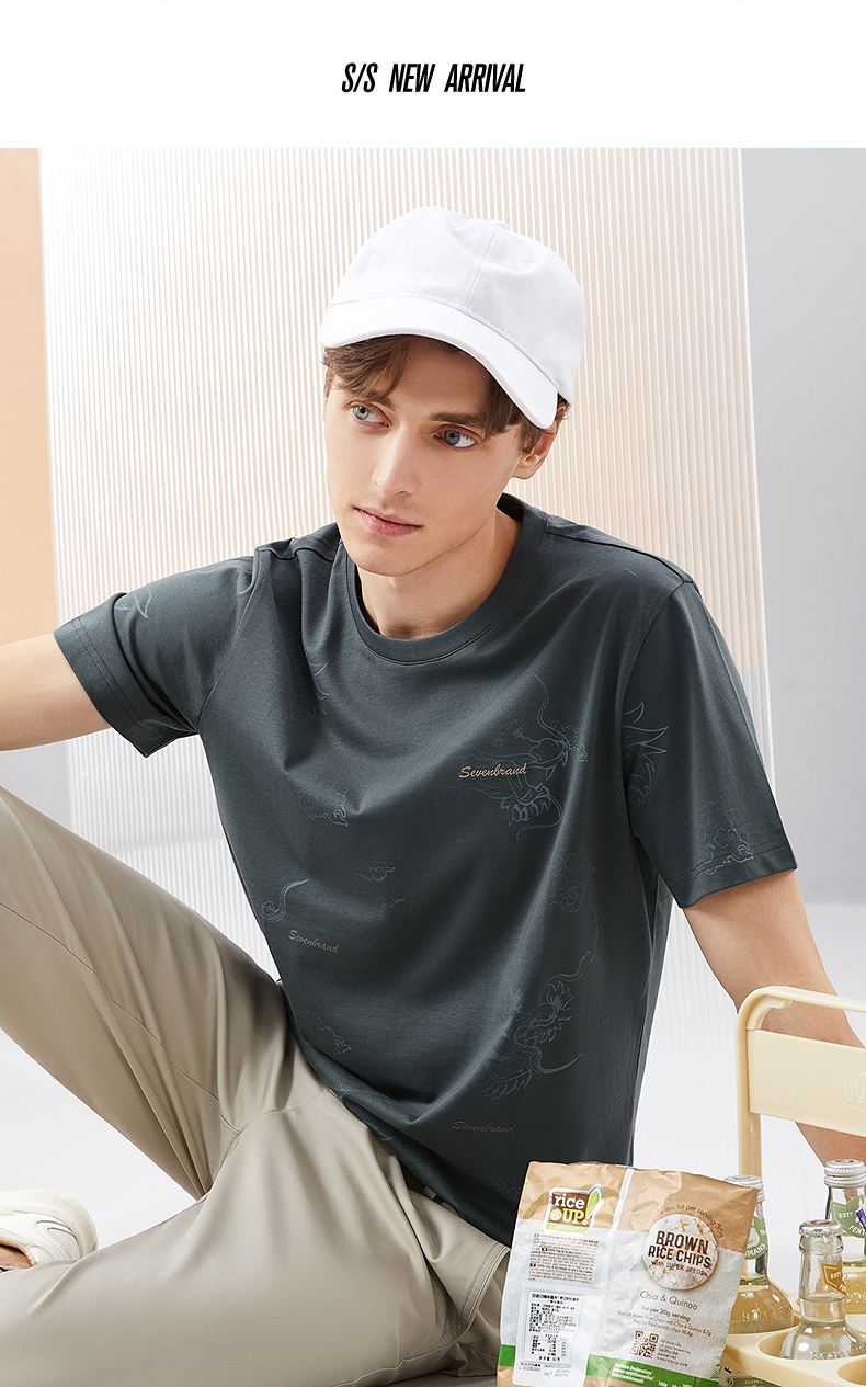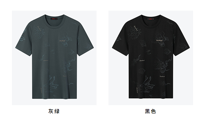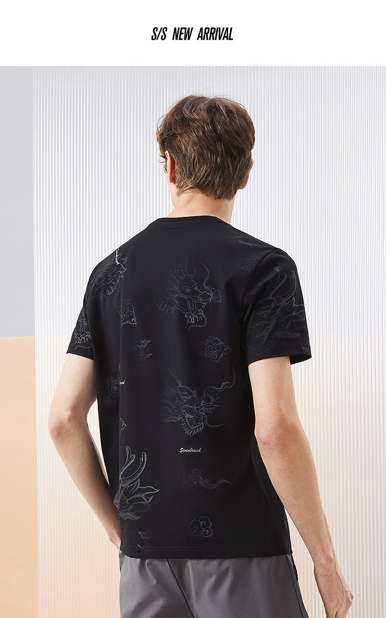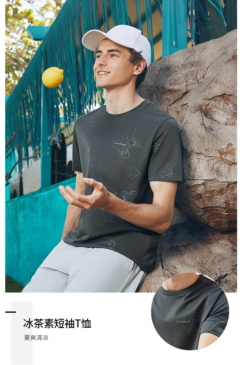 【特价】【冰茶素】柒牌男装短袖t恤男夏季凉感时尚休闲龙纹印花圆领上衣 126T71810