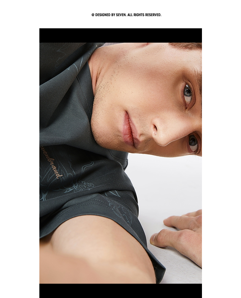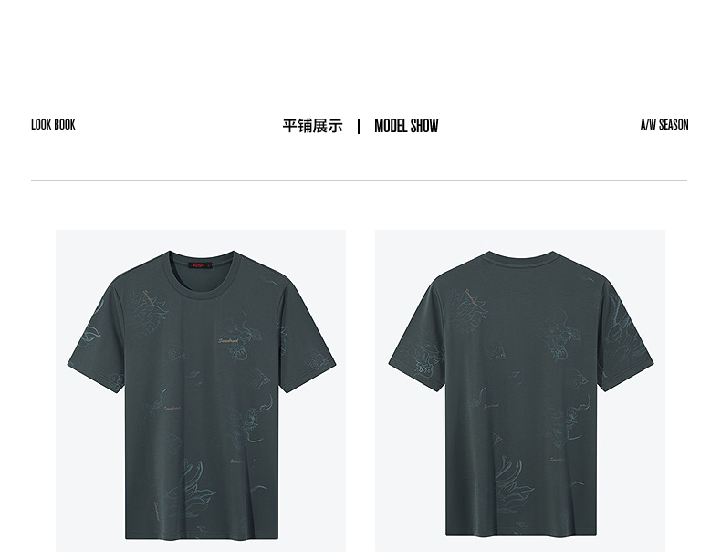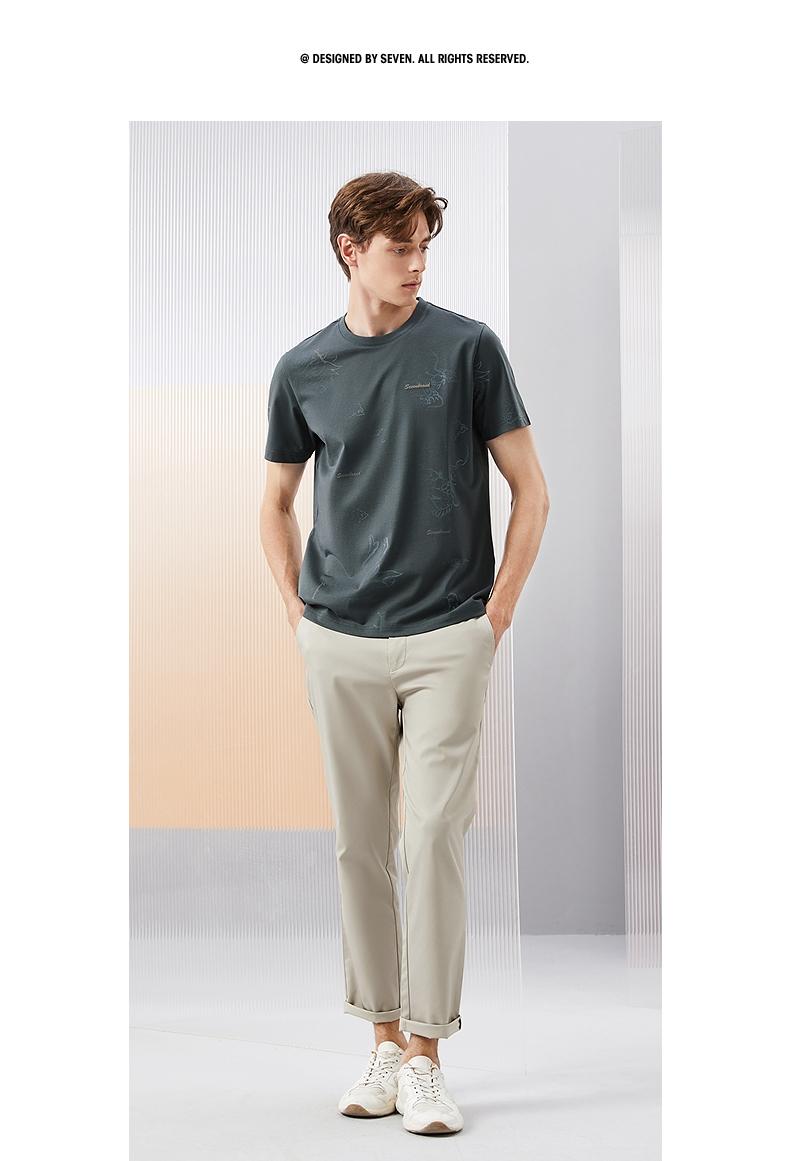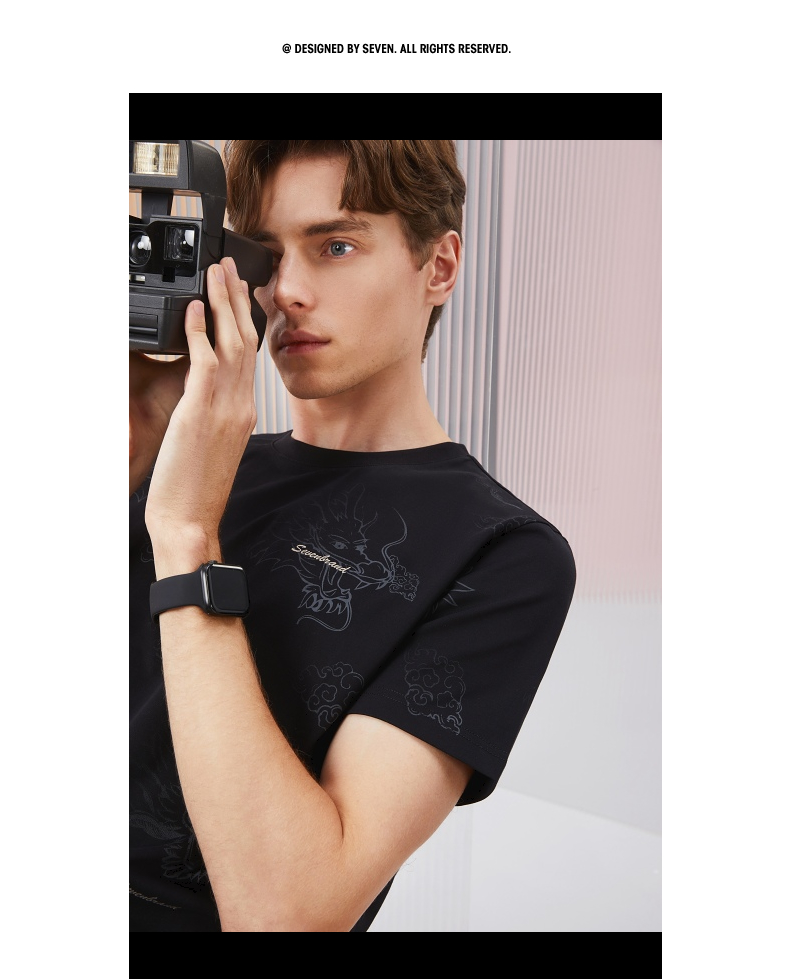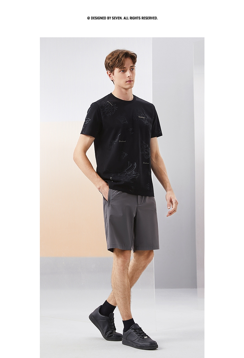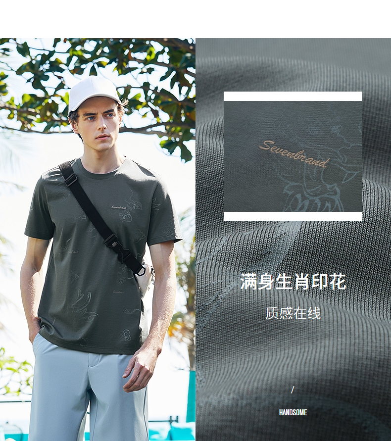 【特价】【冰茶素】柒牌男装短袖t恤男夏季凉感时尚休闲龙纹印花圆领上衣 126T71810
