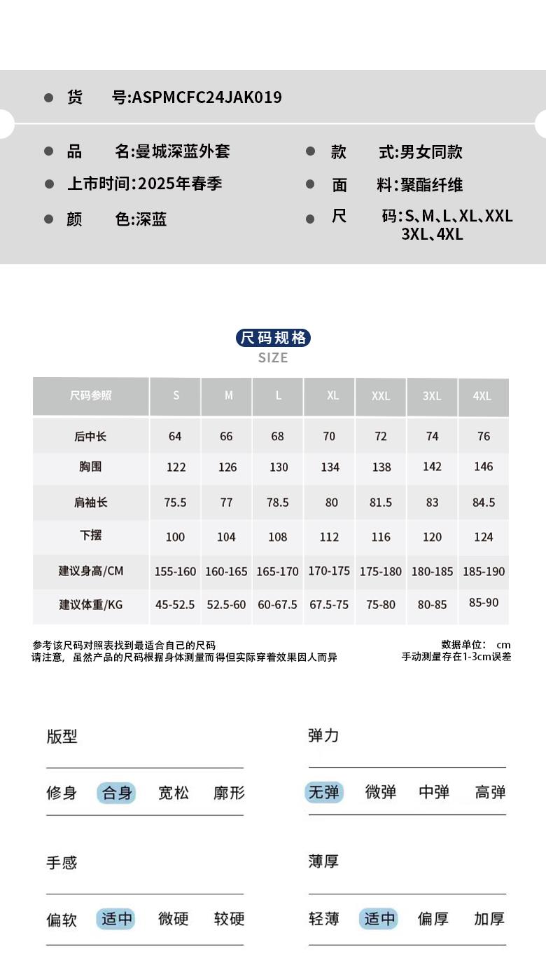 【官方正版】曼城俱乐部 | 深蓝立领外套足球迷简约运动夹克