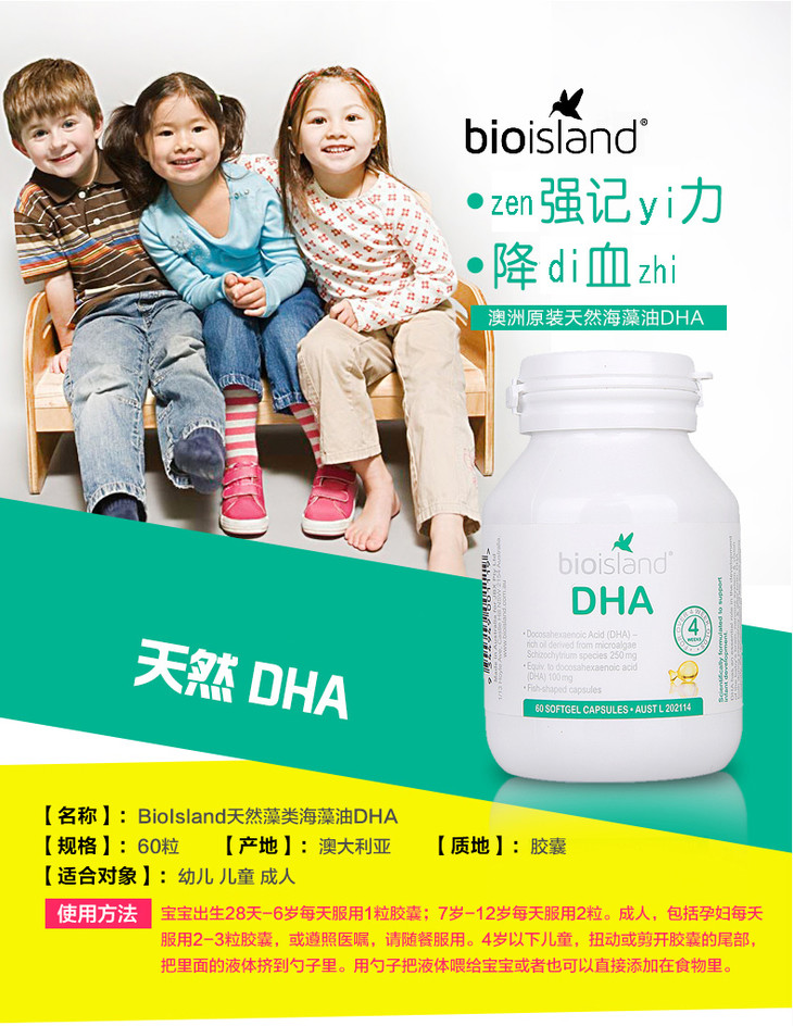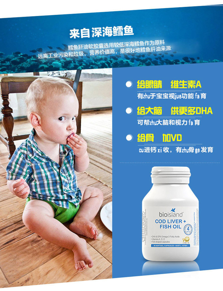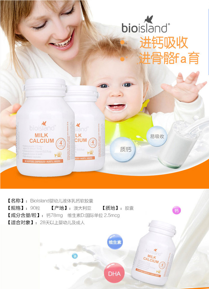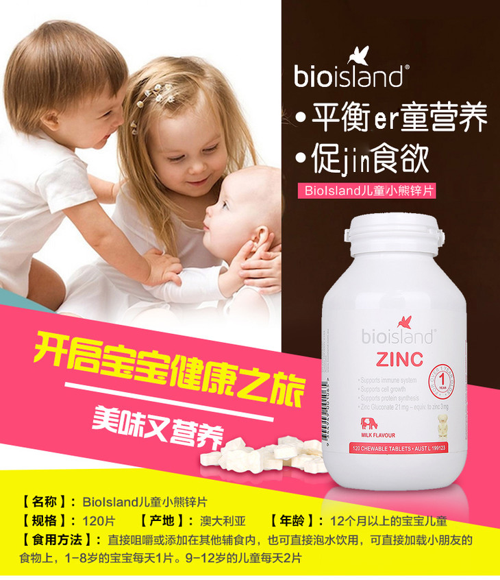 【现货】 澳洲bio island四宝婴幼儿童锌片+鱼肝油+乳钙+DHA补钙