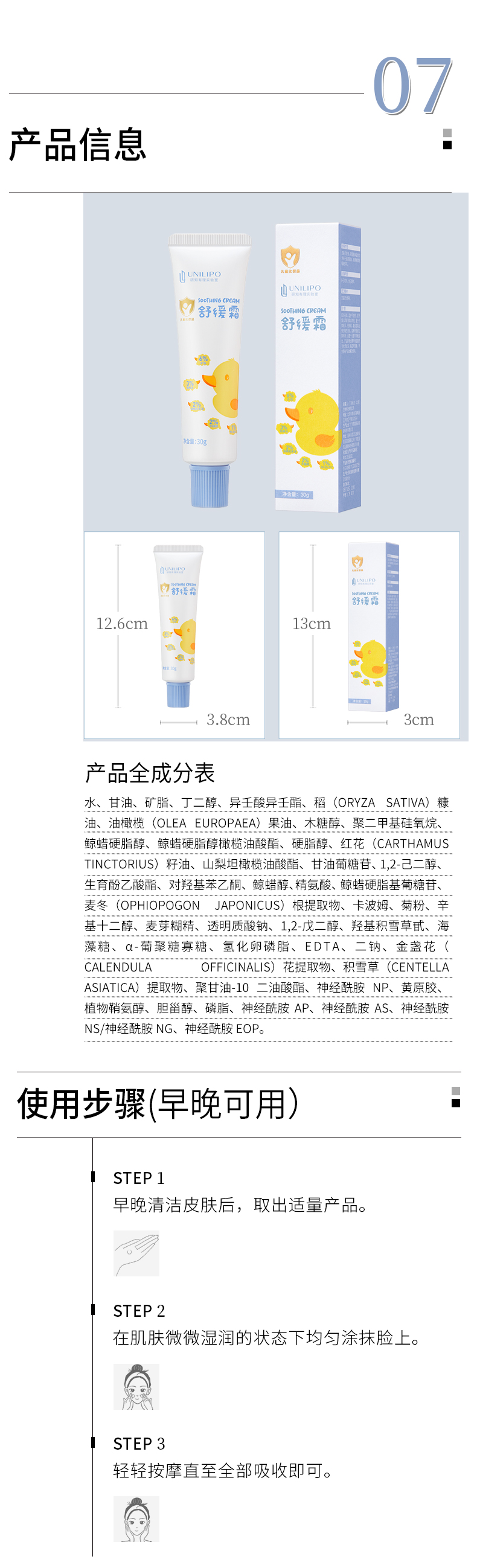 【直击皮肤敏*红*痒】UNILIPO研知有理 小黄鸭舒缓霜30克