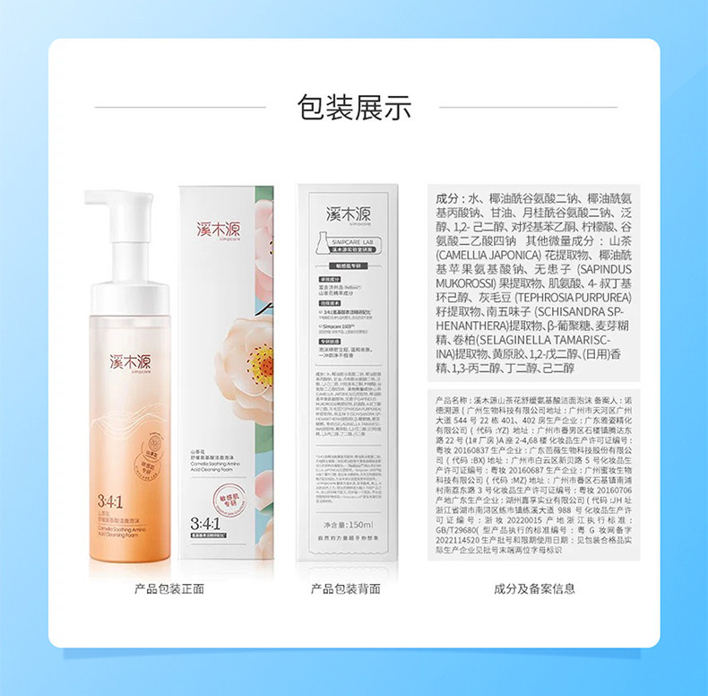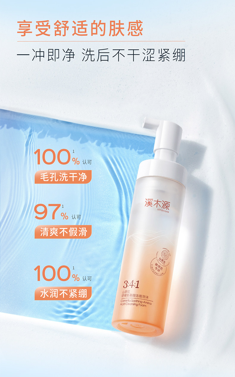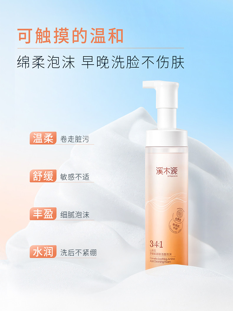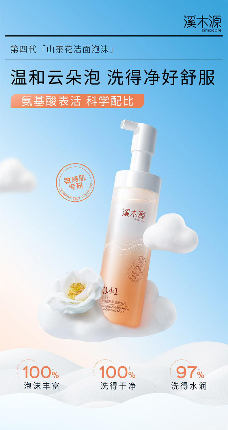 溪木源山茶花洁面150ML 泡沫氨基酸洗面奶慕斯洁面乳清洁