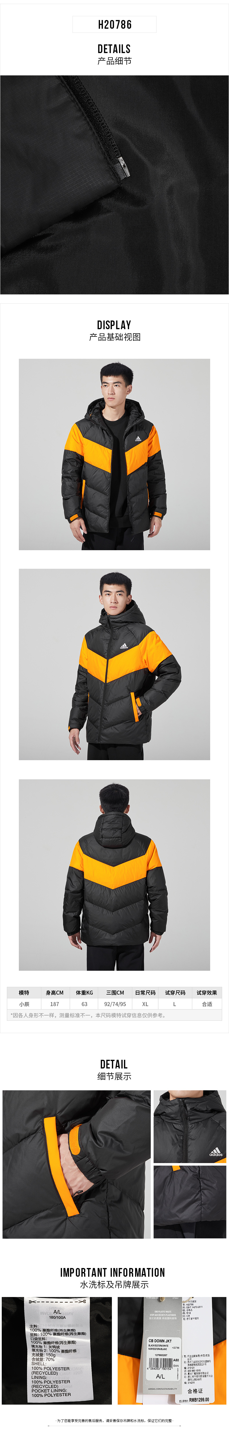 Adidas阿迪达斯羽绒服男装上衣2021冬季新款运动服防风保暖舒适连帽羽绒防风夹克外套H20786