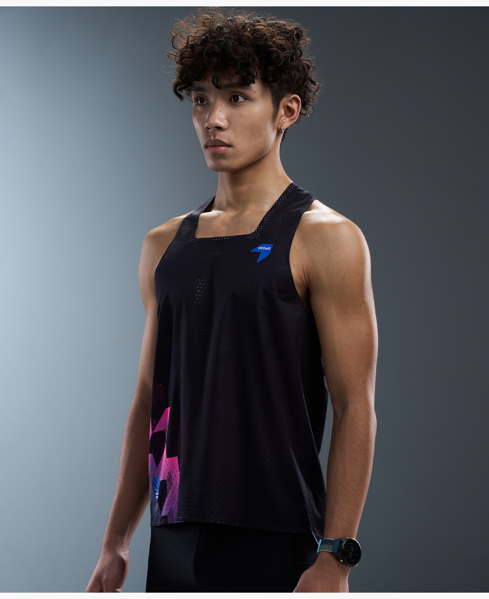 内道新款一片式箭头风洞背心男款跑步汗训练马拉松透气贴合背心