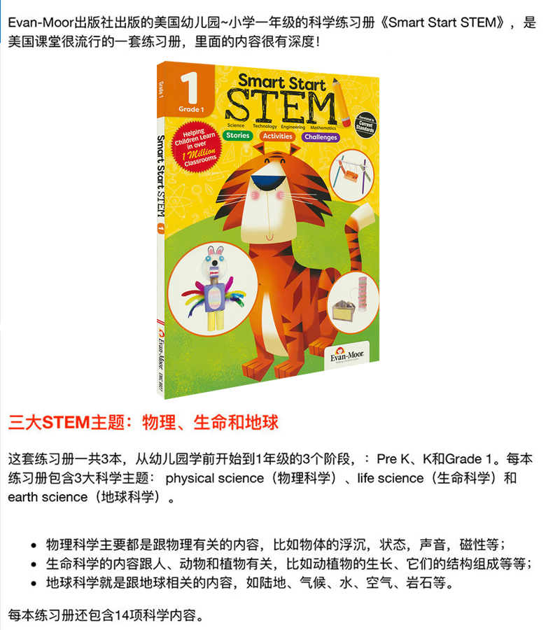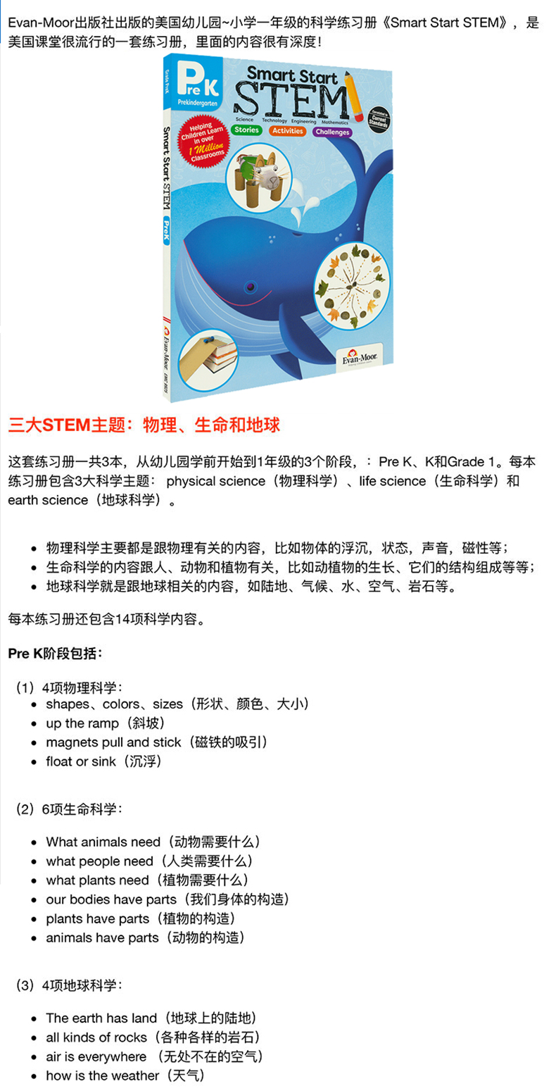 【中商原版】聪慧启蒙跨学科学习练习册3册 英文原版 Evan Moor Smart Start STEM 美国加州教辅 英语启蒙教材 3-8岁