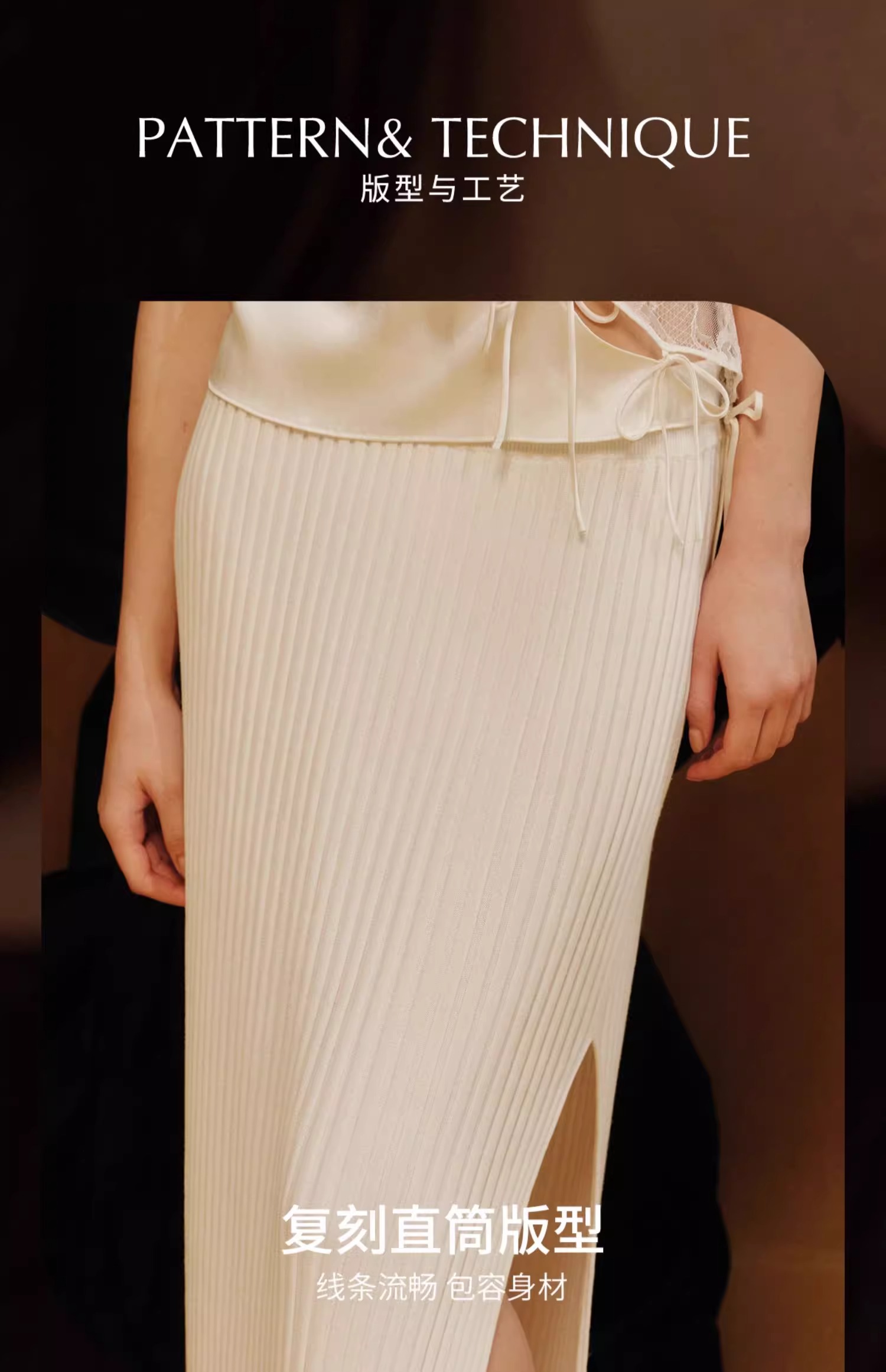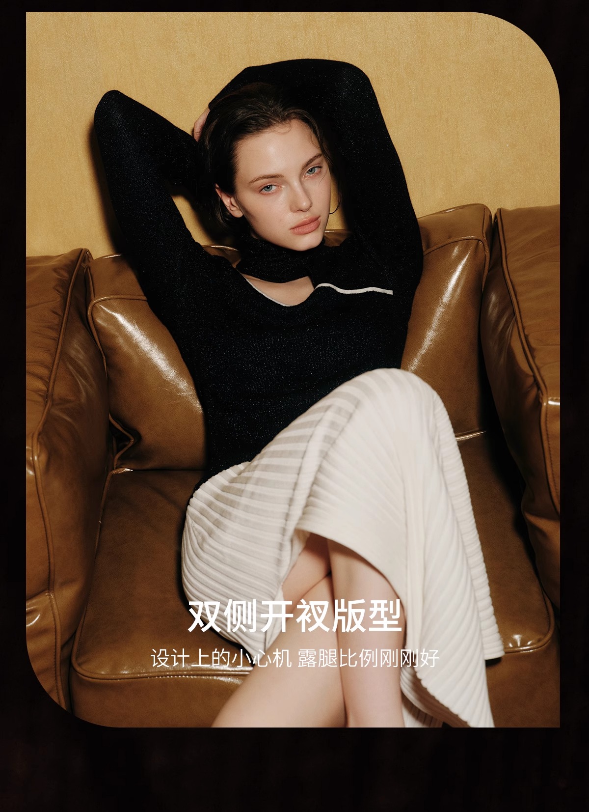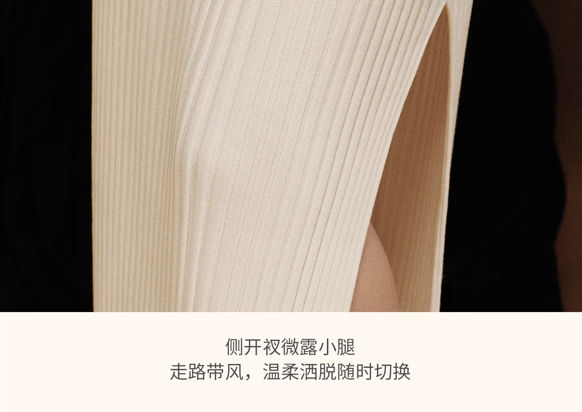 【明星同款】里性 LIVARY MIO 星芒-简约气质侧开叉显瘦直筒针织裙半身裙