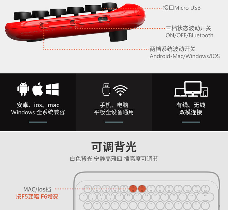 LOFREE/洛斐 DOT圆点蓝牙机械键盘 MAC办公笔记本无线青轴红色