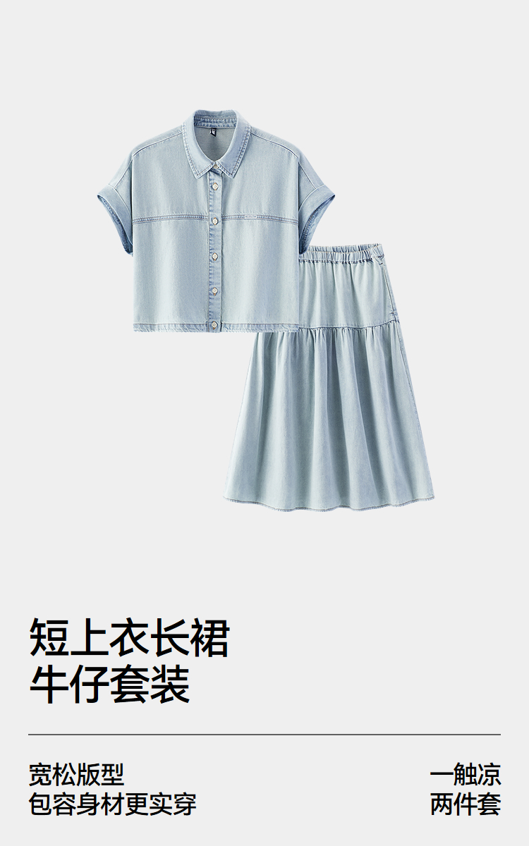 商场同款|森马牛仔套装女夏凉感上衣宽松长裙2026新款潮流两件套