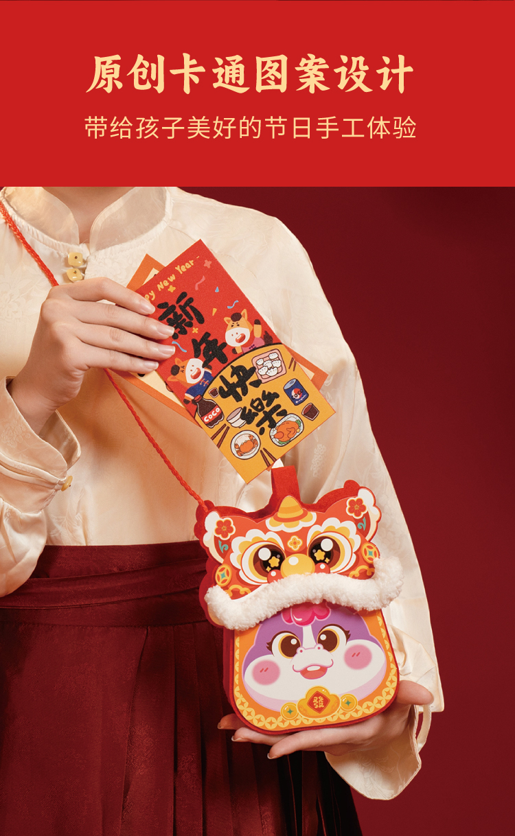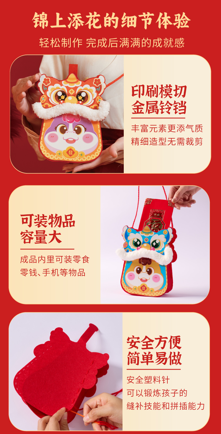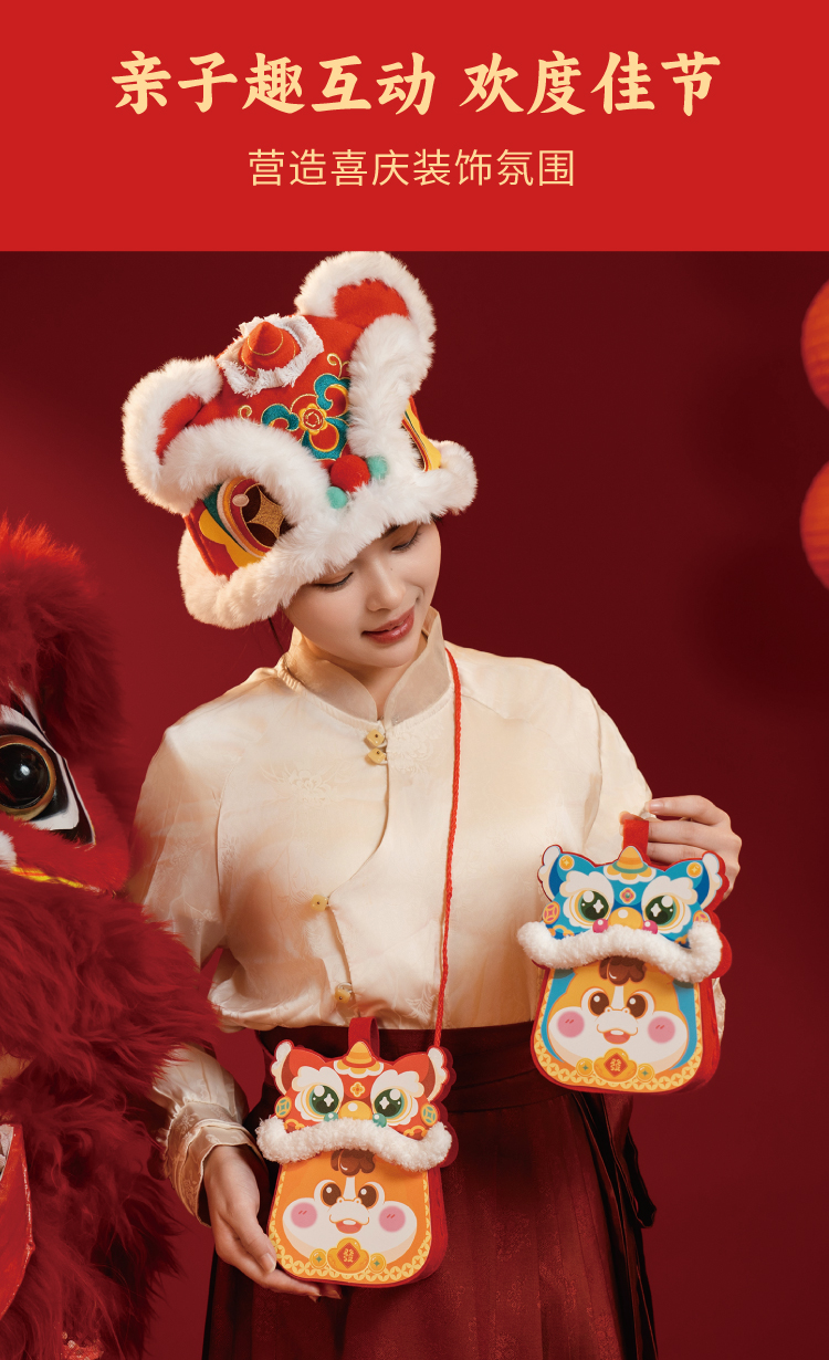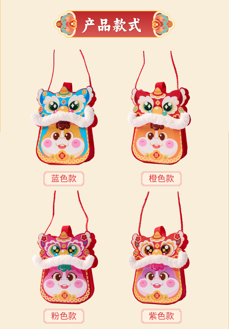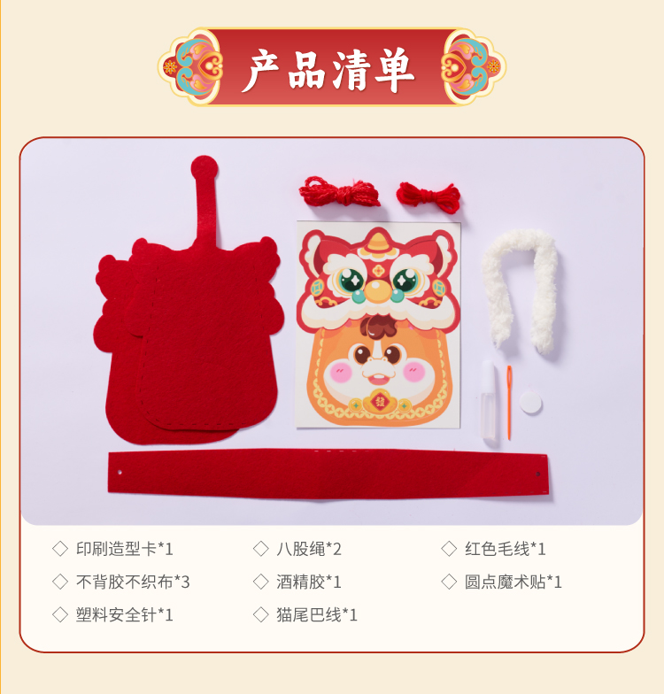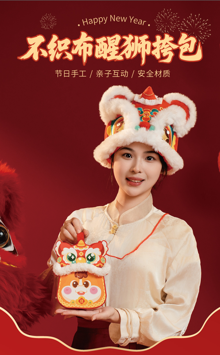 马年新年春节元旦不织布醒狮挎包手工diy儿童制作材料幼儿园包包