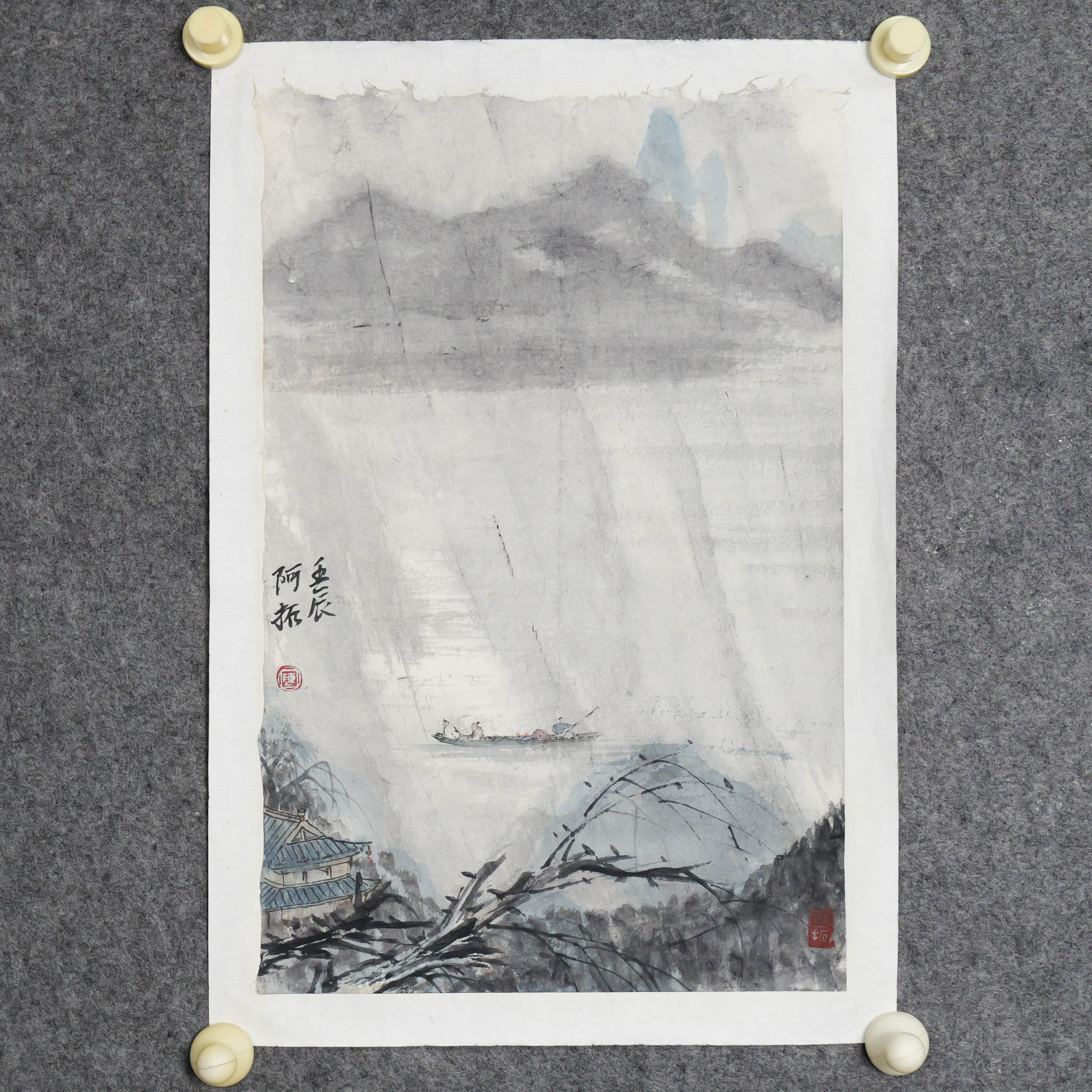 陈公拓《山水之四》国画原作36CM*23CM 手绘宣纸山水作品