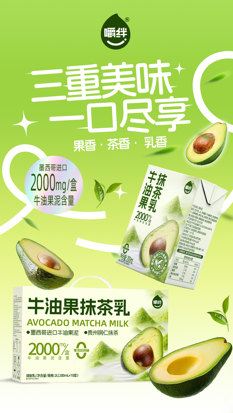 嚼绊牛油果抹茶乳 果香茶香乳香 三重口味