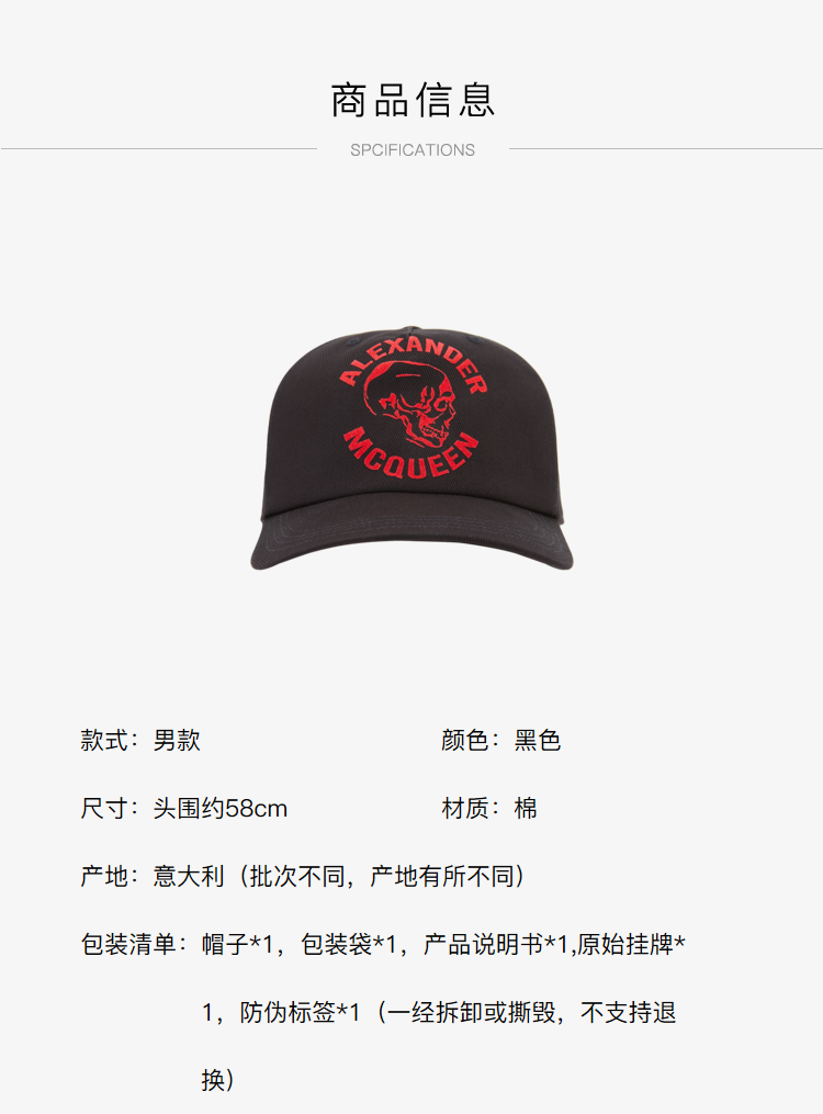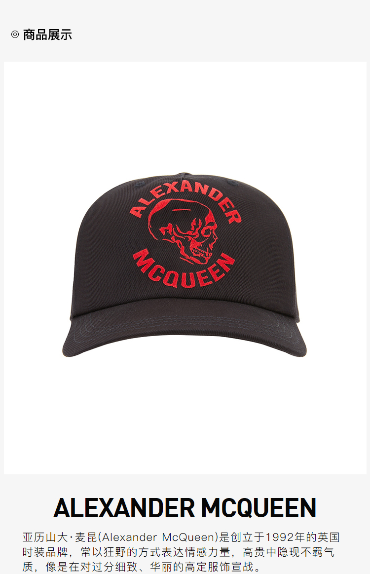 ALEXANDER MCQUEEN 亚历山大·麦昆 男士骷髅头字母徽标印花棒球帽 6802474105Q
