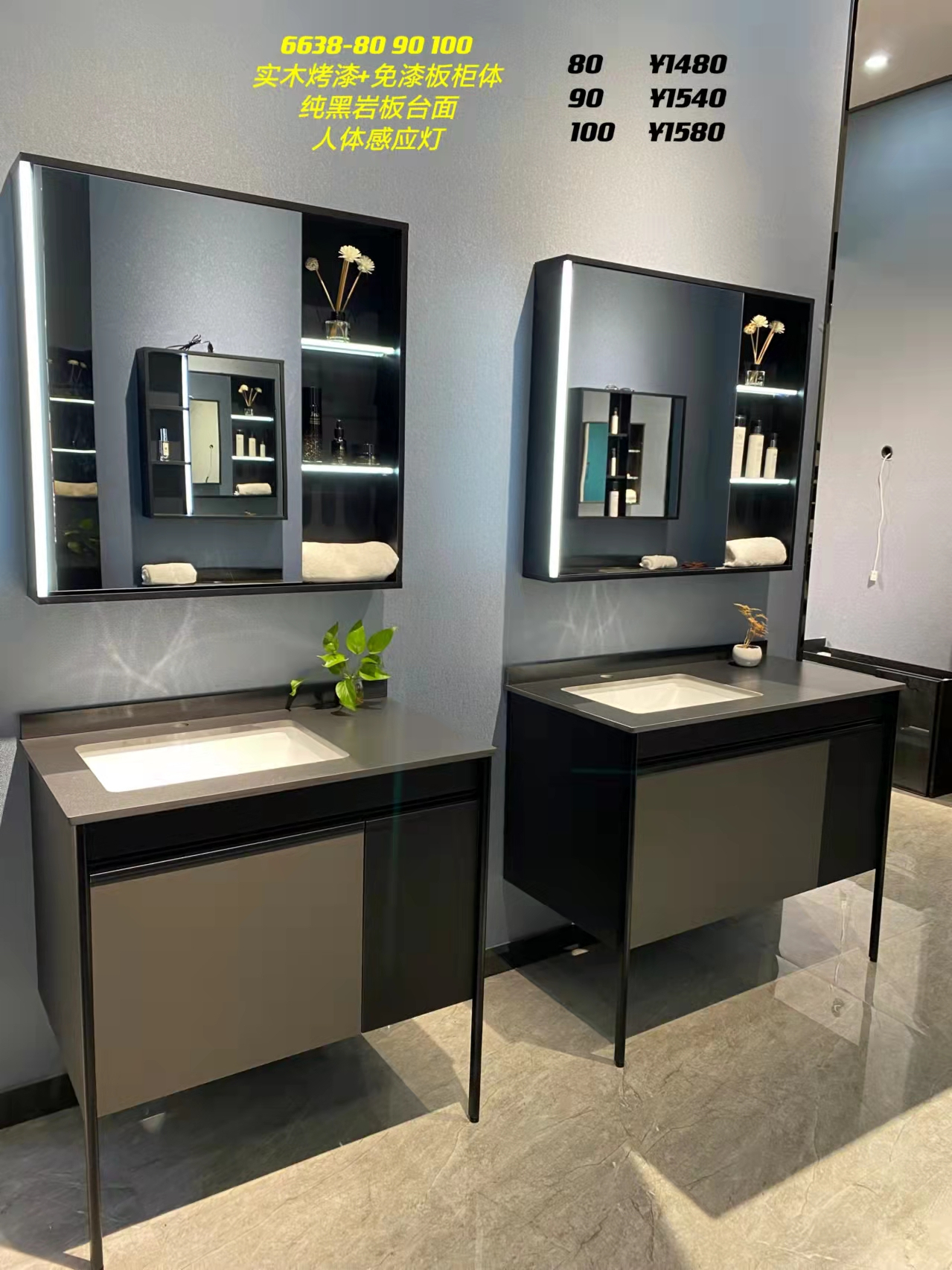 纯黑岩板台面人体感应灯洗漱台(6638)【LY】