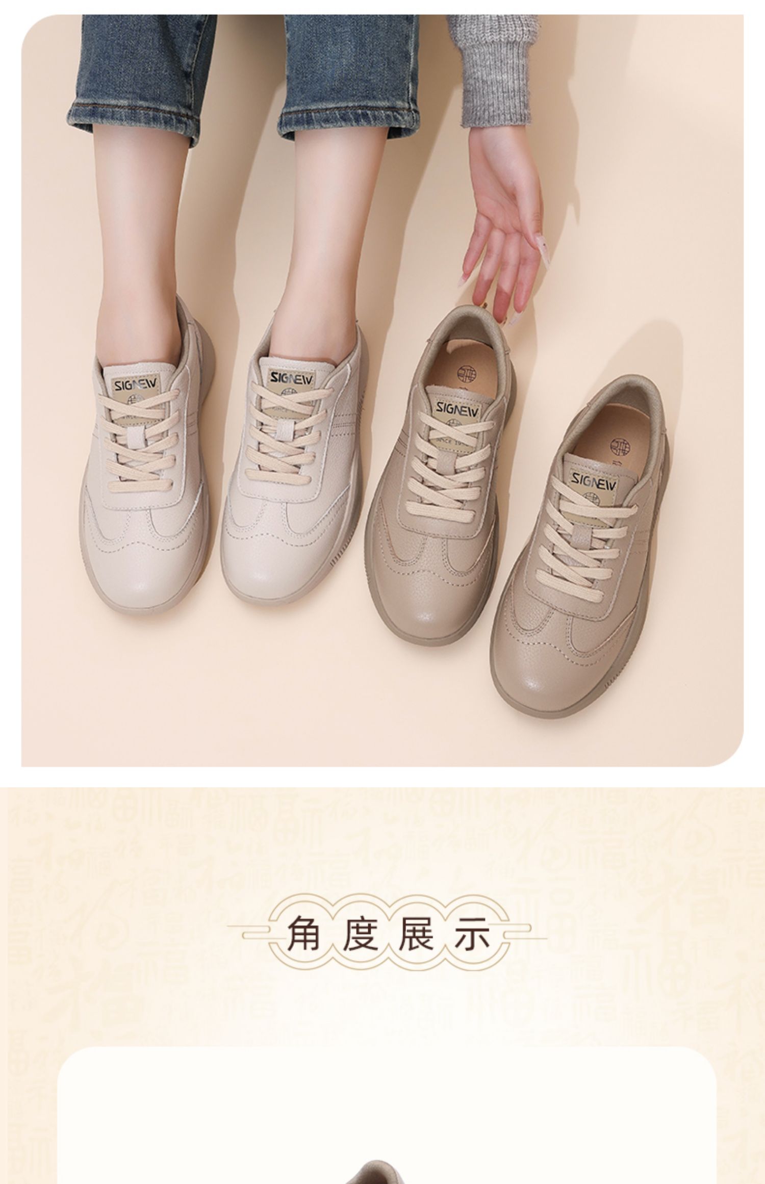 信诺 真皮舒适女鞋 2024新款秋季休闲运动鞋软底妈妈鞋子中年皮鞋Q5706-5