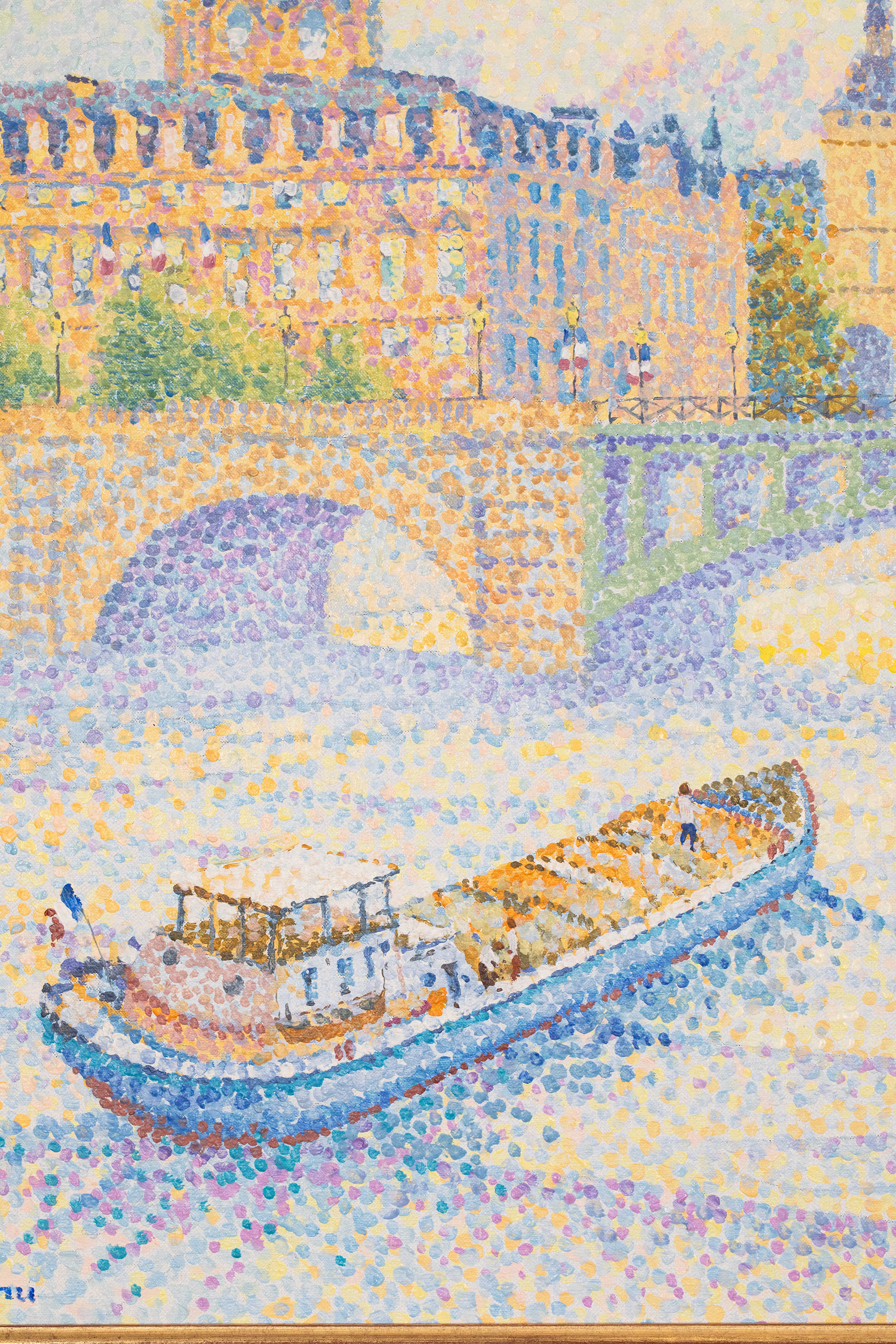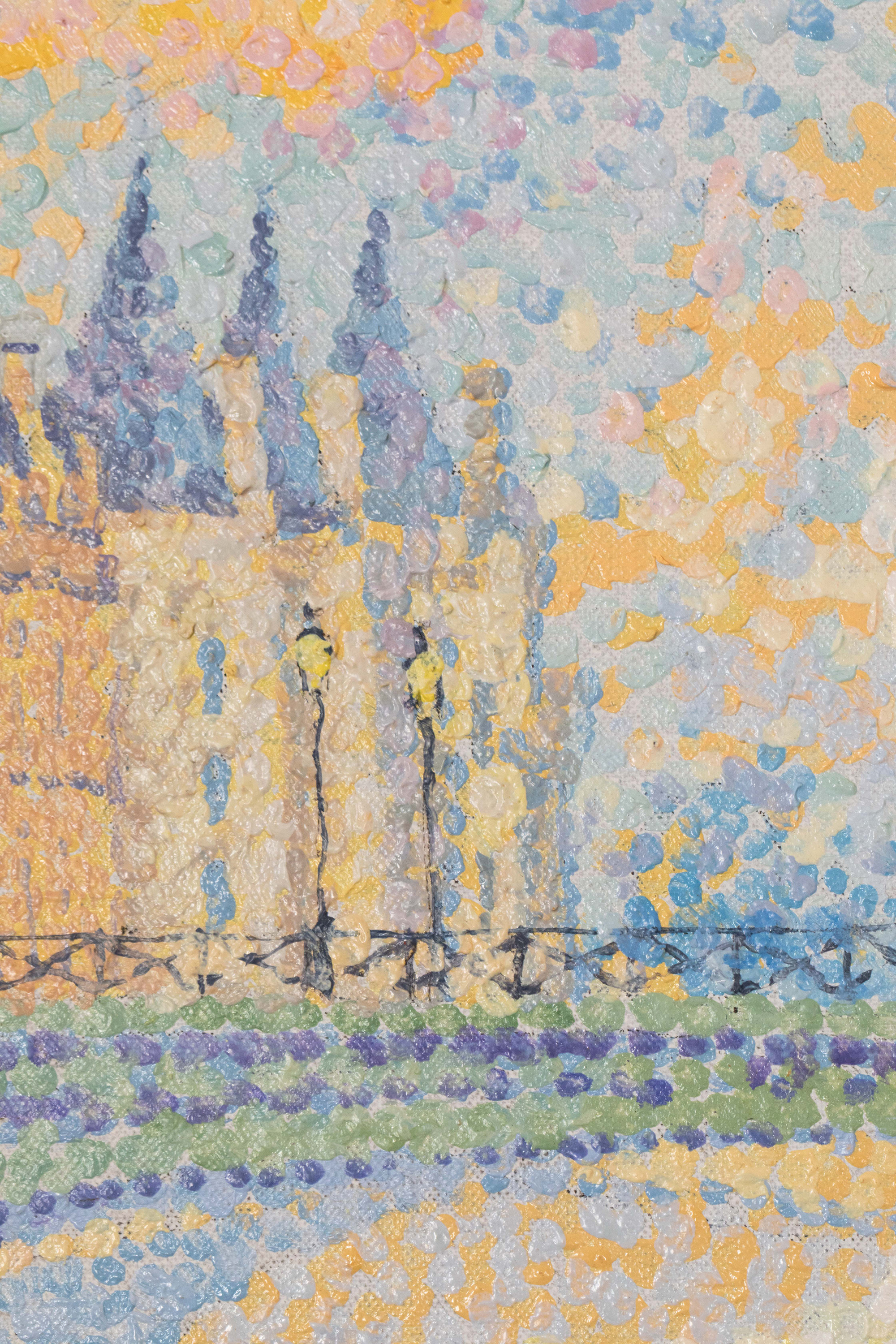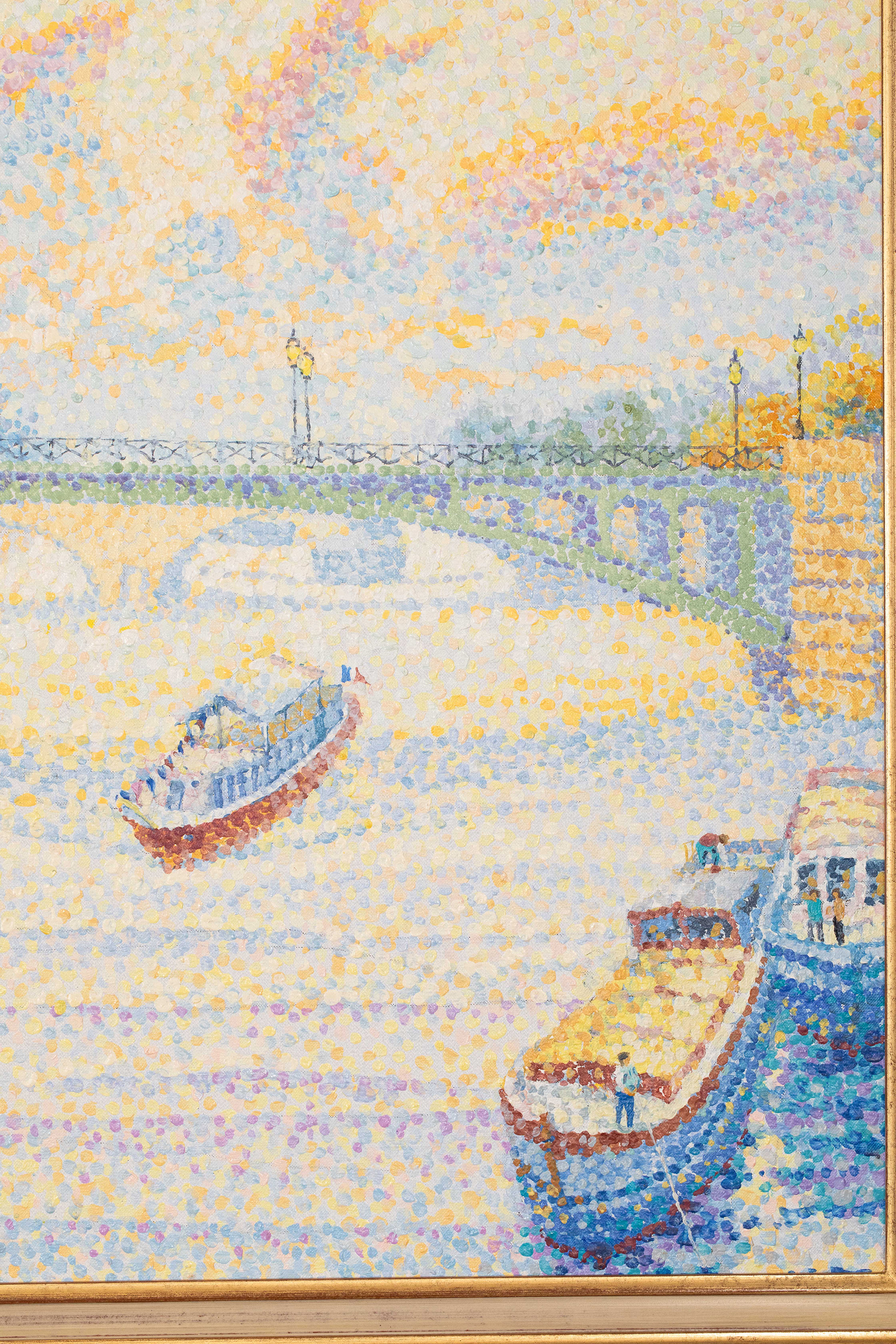 20世纪法国现代点彩画派名家Yvonne Canu签名创作风景主题布面油画《巴黎塞纳河畔》