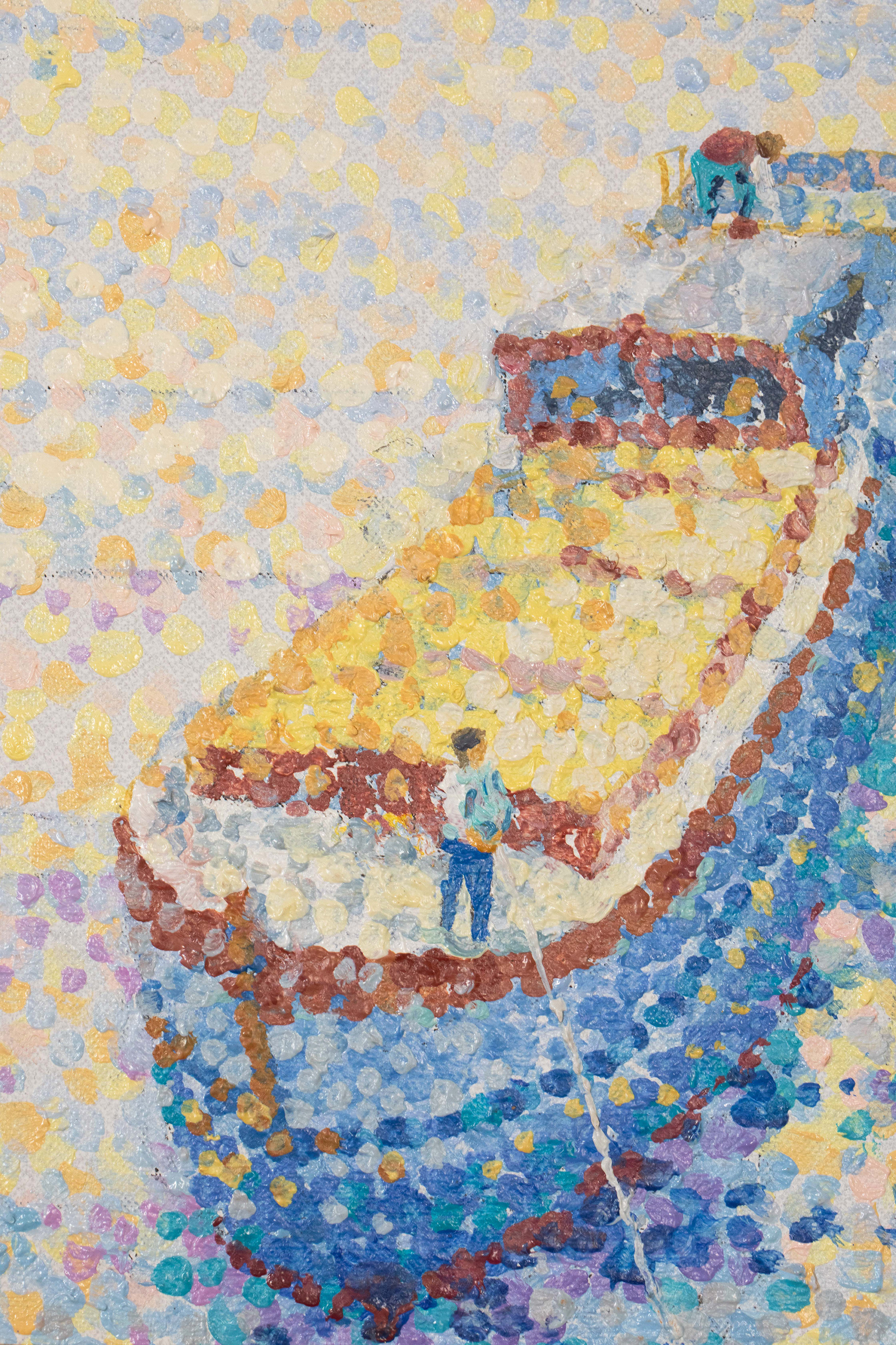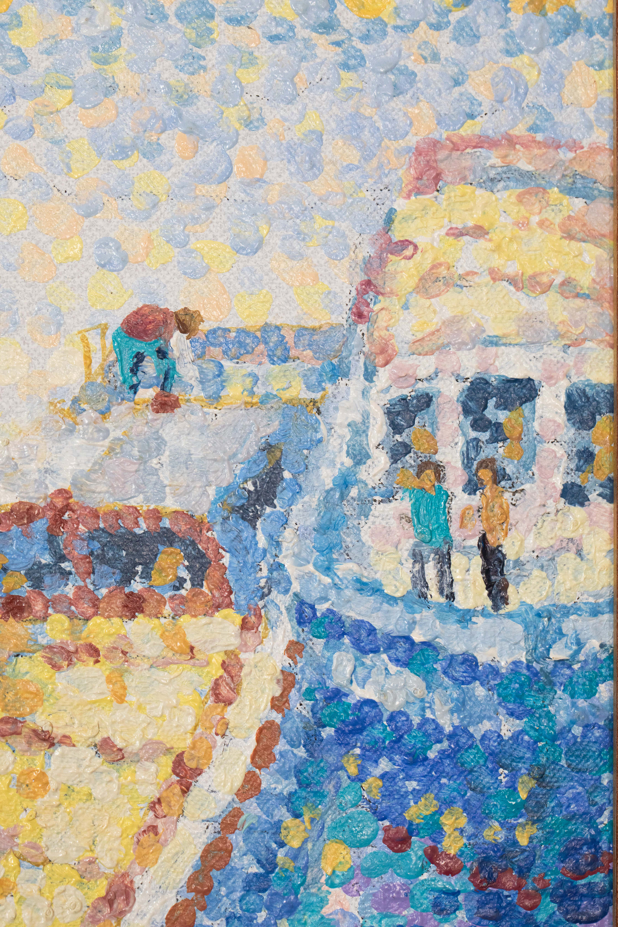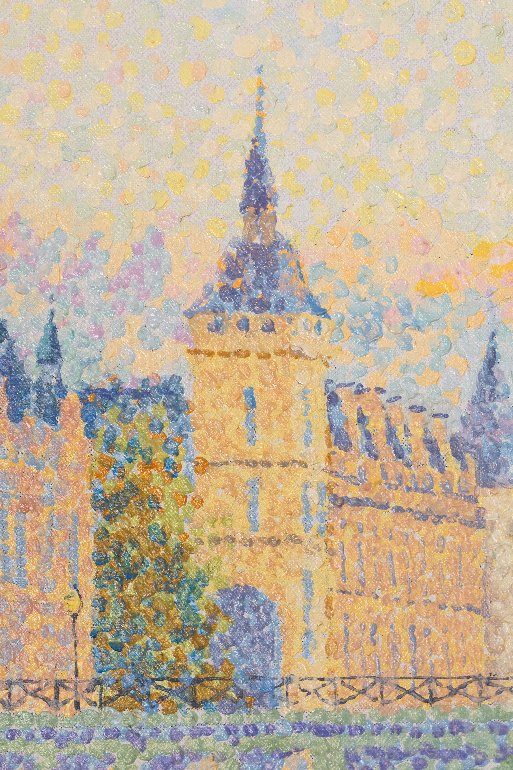 20世纪法国现代点彩画派名家Yvonne Canu签名创作风景主题布面油画《巴黎塞纳河畔》