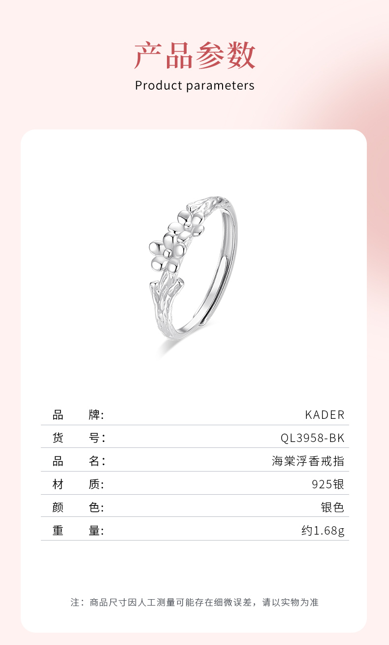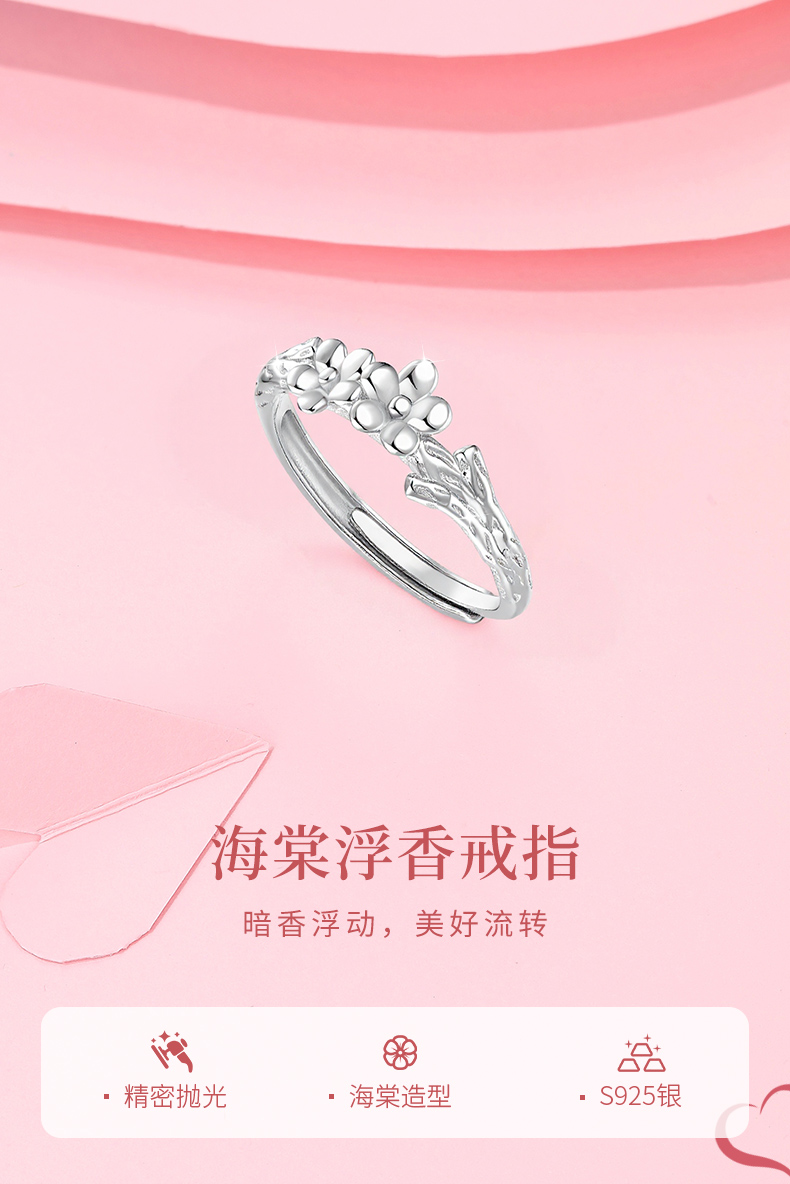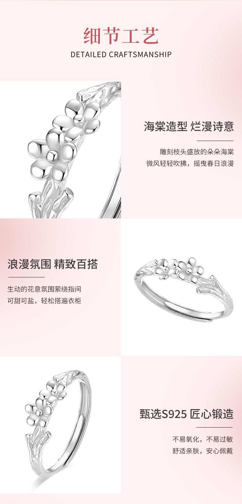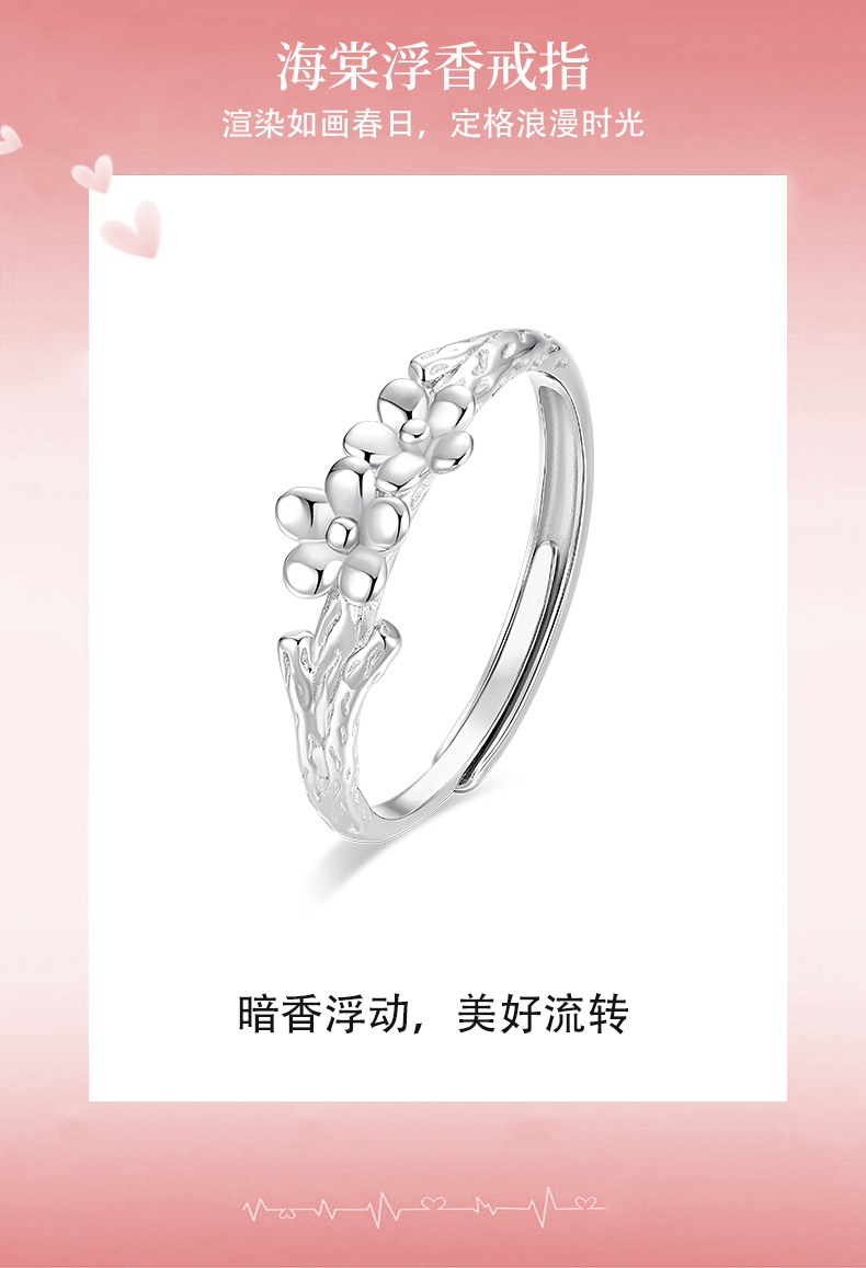 卡蒂罗KADER 海棠浮香女戒 花开富贵新中式国风花朵设计开口可调节单戒 小众精致高级日常百搭