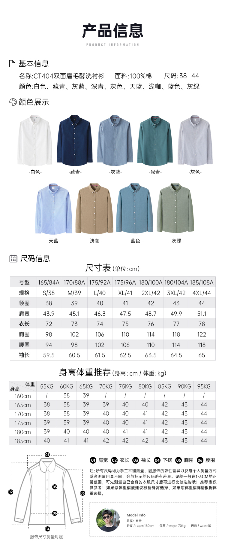 【双面磨毛酵洗衬衫】商务休闲棉质衬衣抗皱通勤长袖上衣