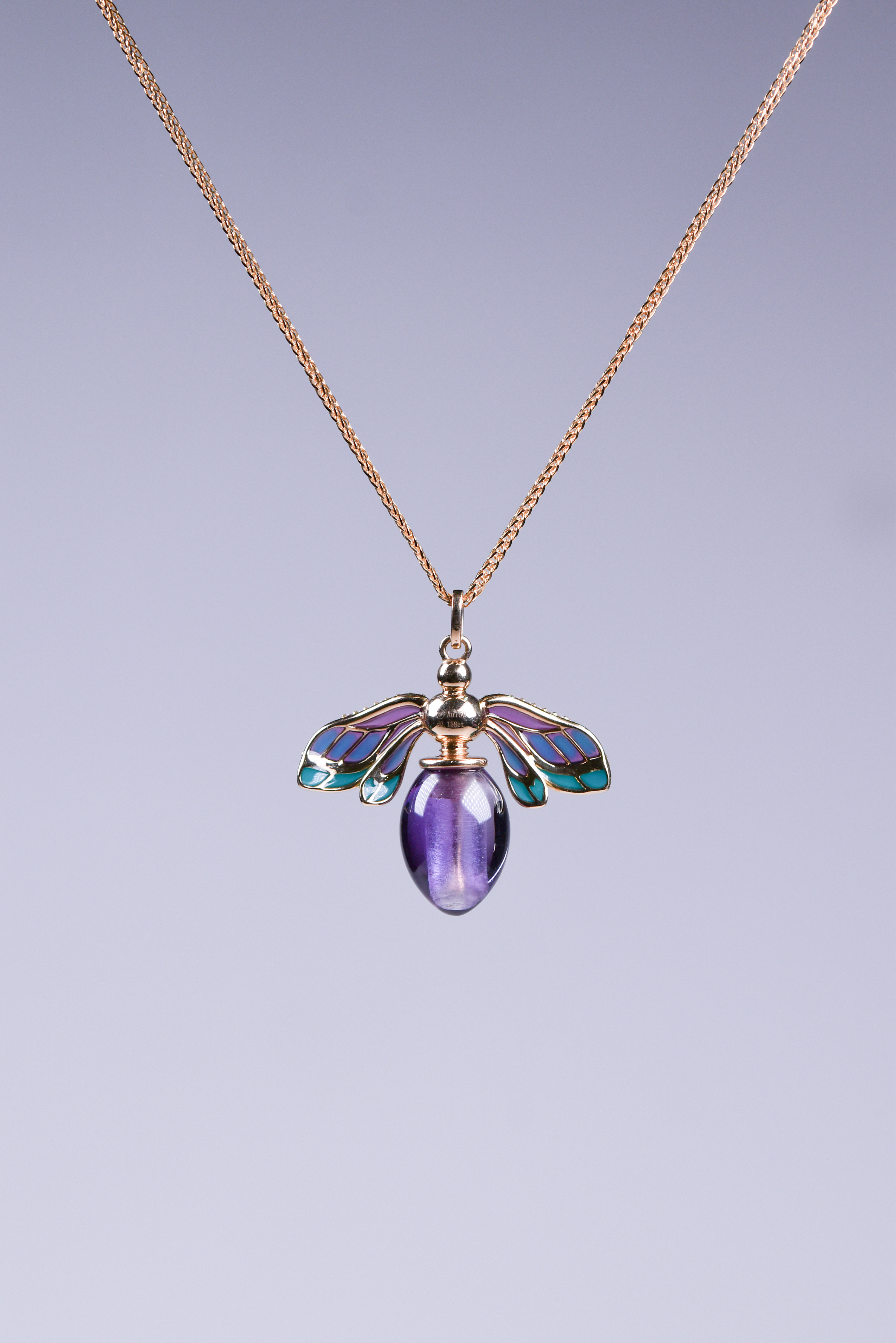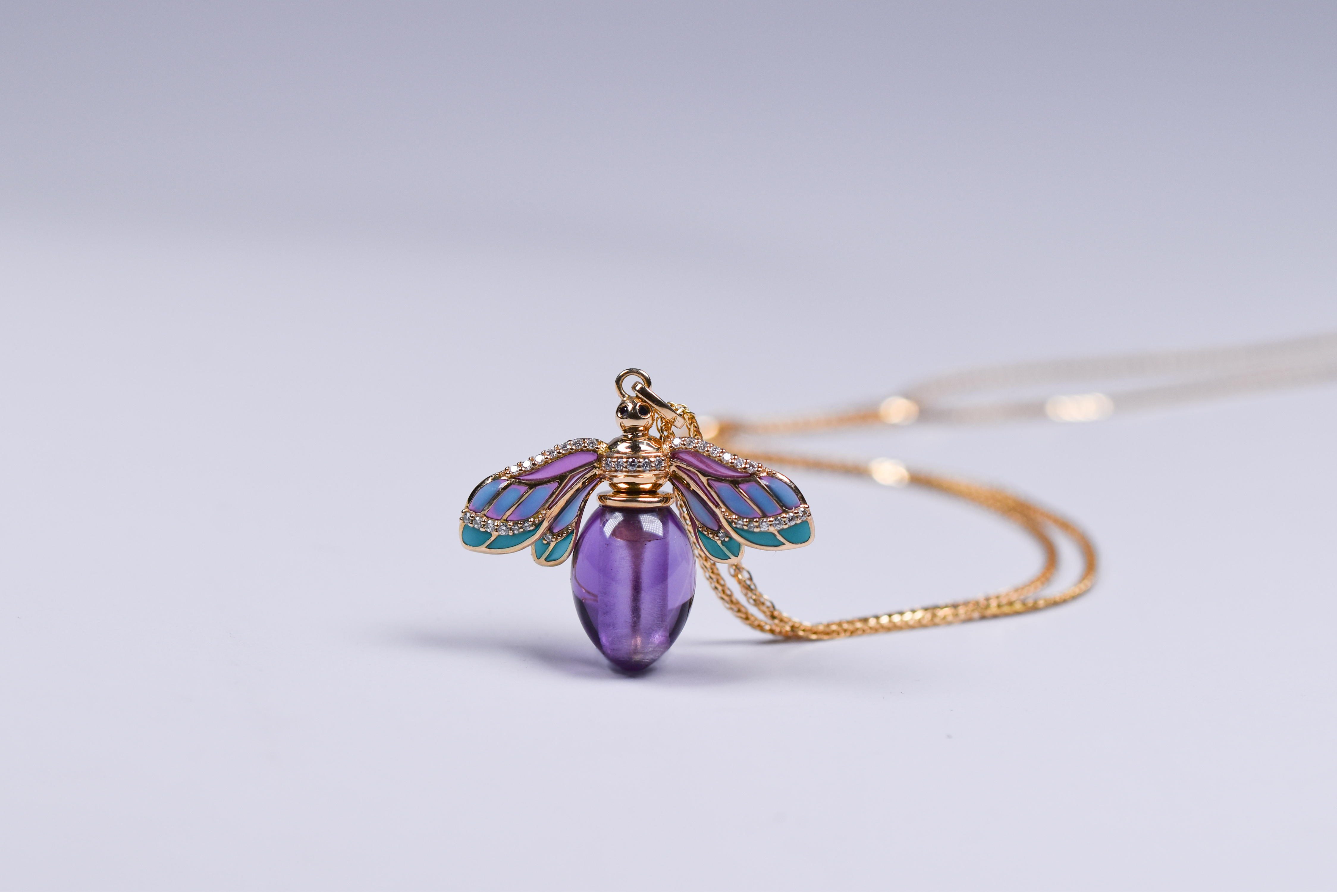主石以紫水晶打磨蜜蜂浑圆的腹尾