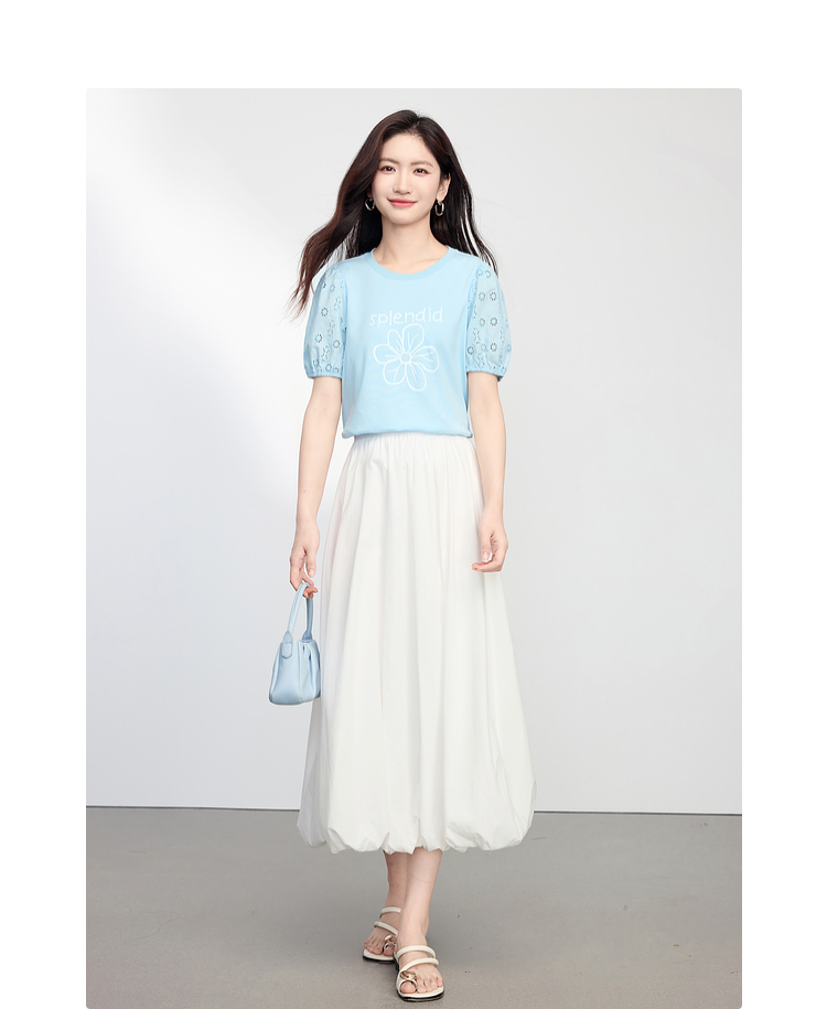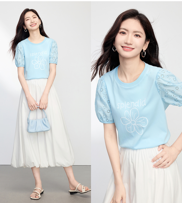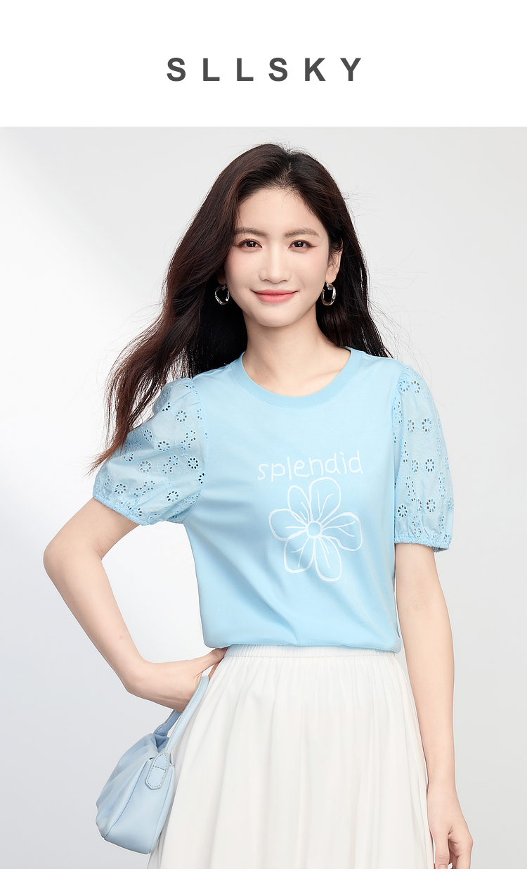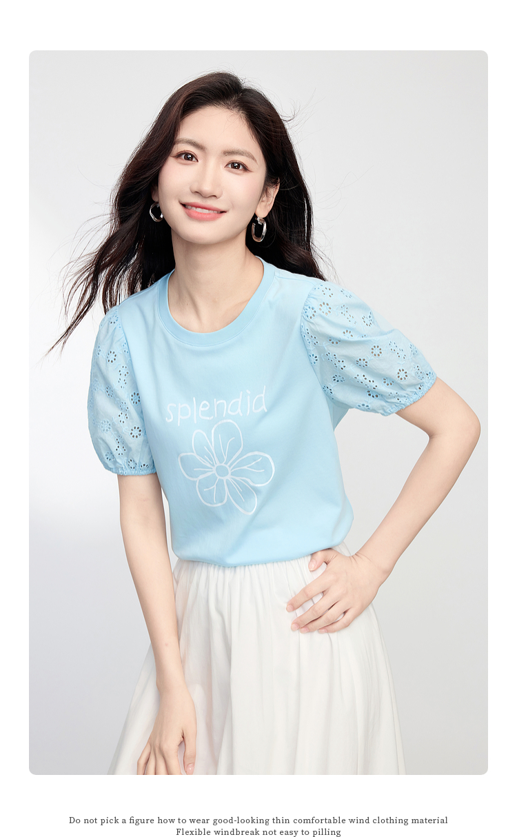 【专属特价】熙世界小雏菊印花T恤女夏季2025新款设计感雕孔短袖体恤纯棉上衣
