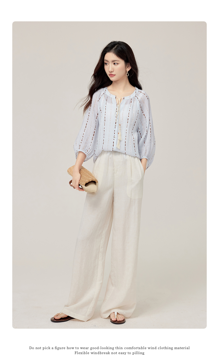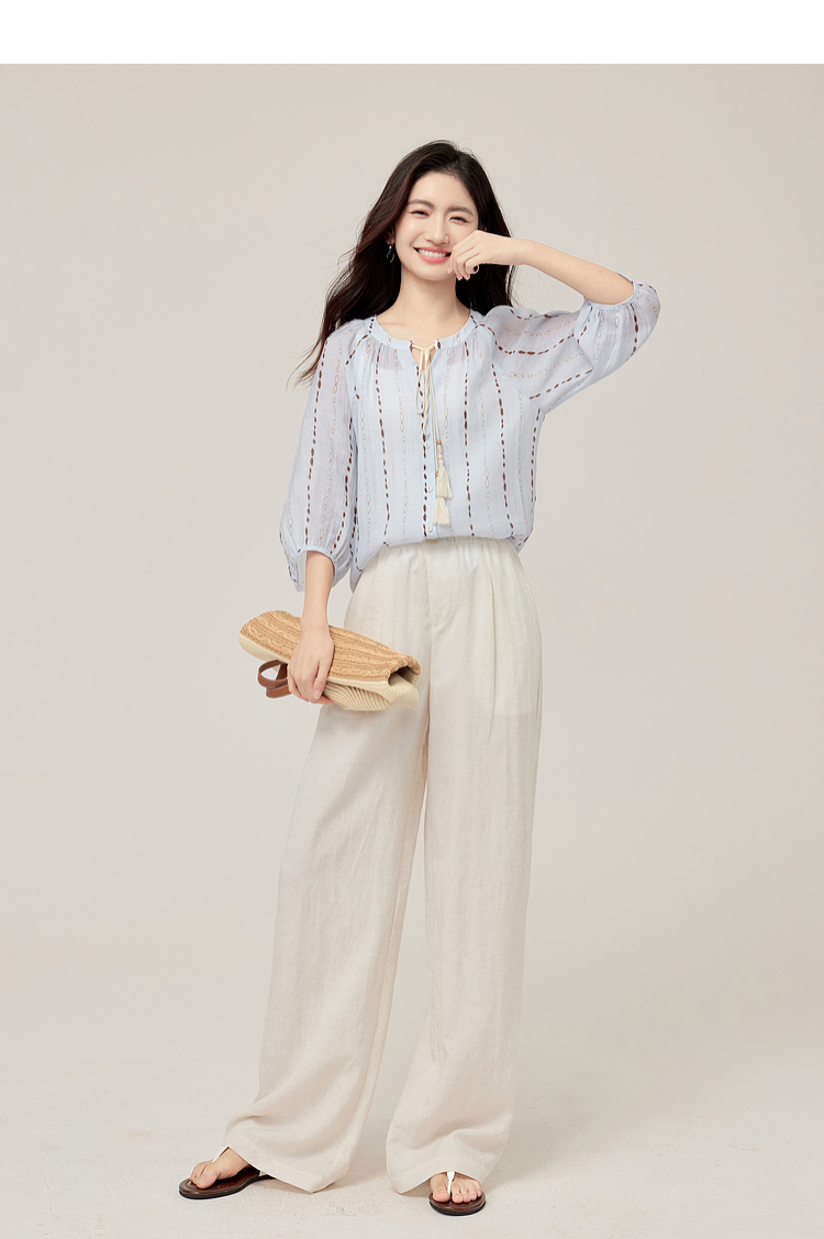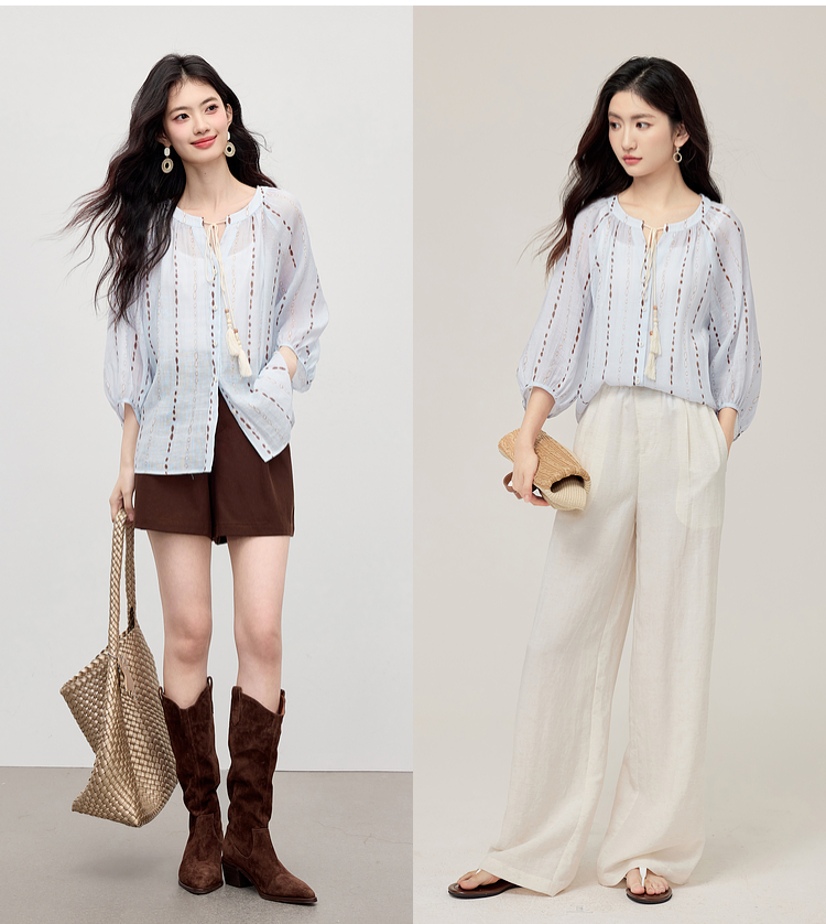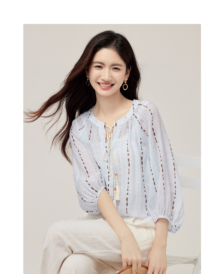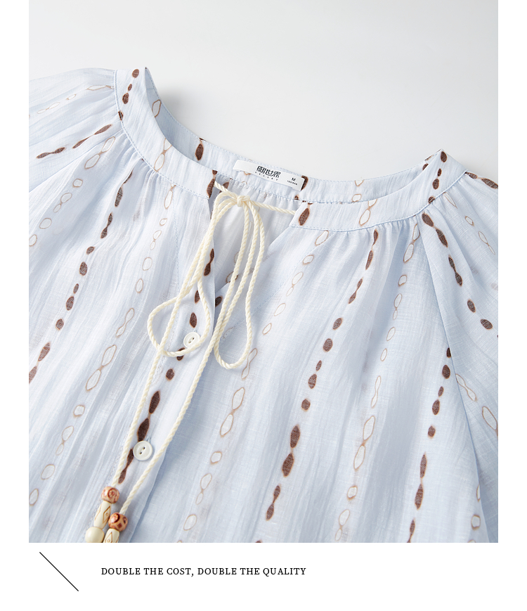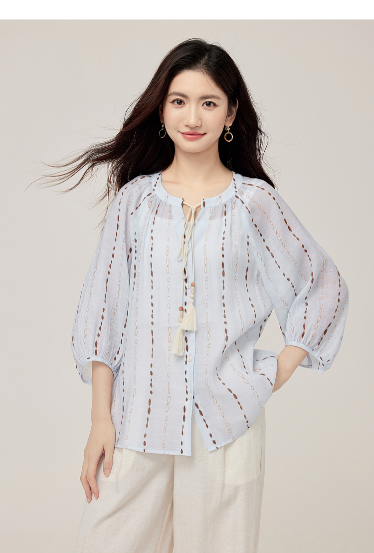 【08/06新品】熙世界天丝亚麻七分袖印花衬衫女2025初秋新款设计感独特漂亮上衣