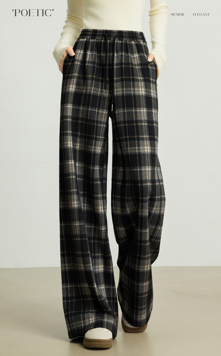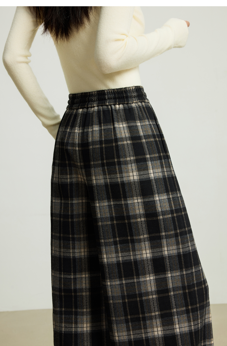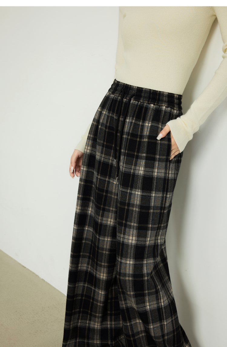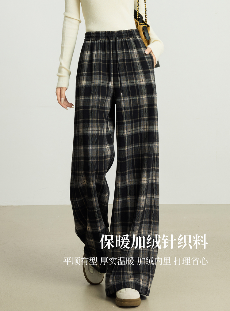 【10/15新品】熙世界加绒格子阔腿裤女秋冬季复古学院直筒休闲裤子宽松bf慵懒风