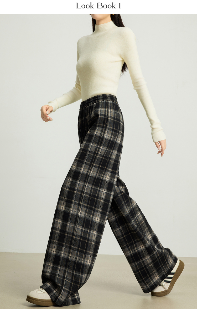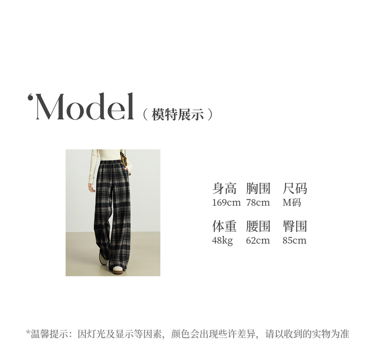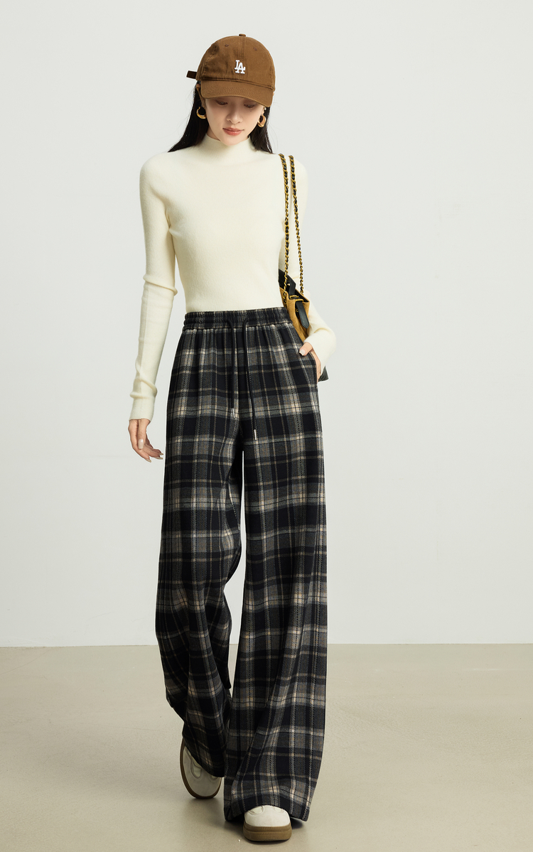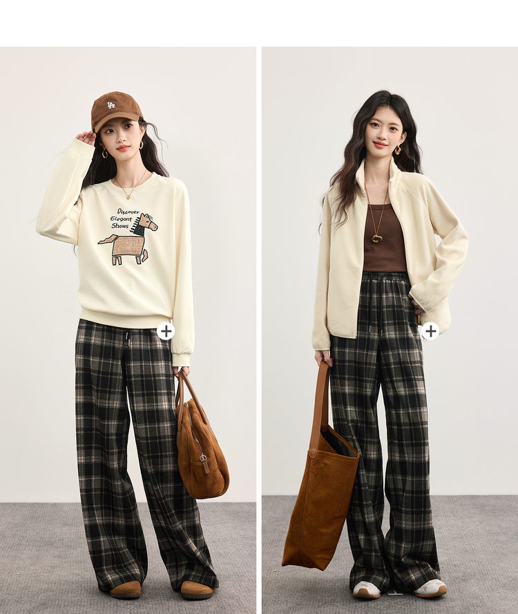 【10/15新品】熙世界加绒格子阔腿裤女秋冬季复古学院直筒休闲裤子宽松bf慵懒风