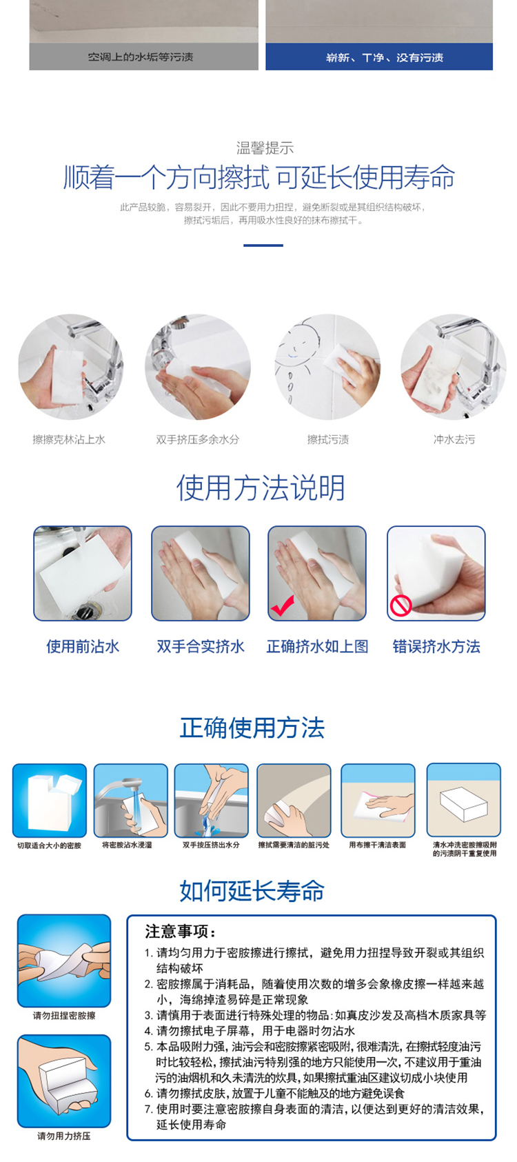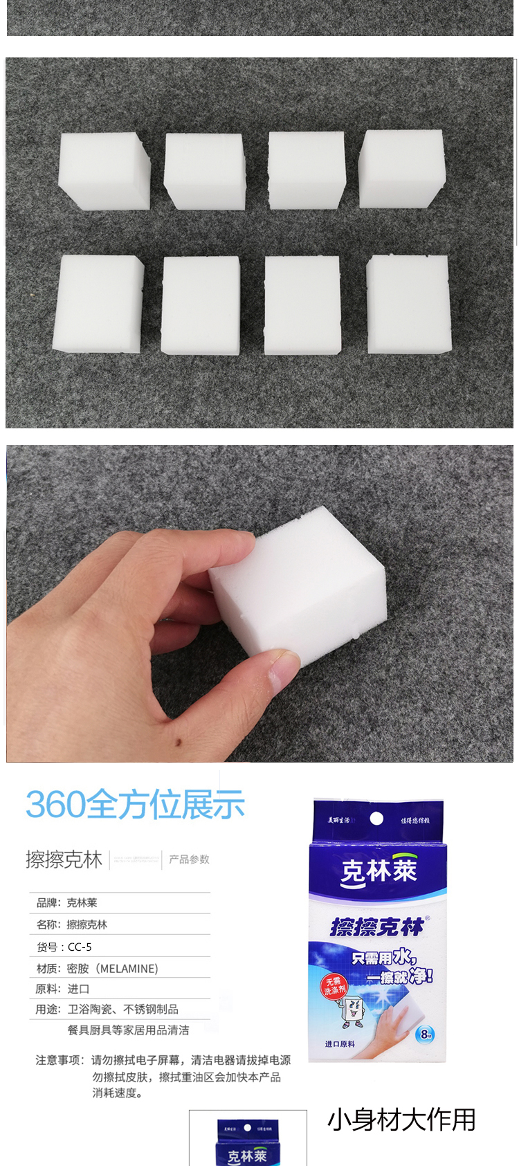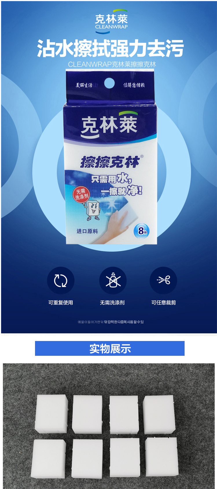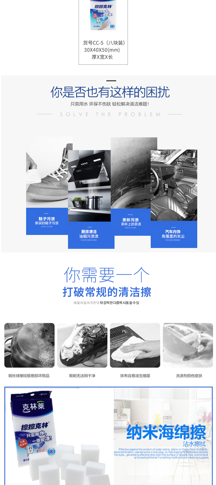 韩国克林莱擦擦克林去污神奇魔术擦鞋厨卫家具污垢清洁擦 30*40*50mm 8片装厨房纳米海绵高密度海绵CC-5