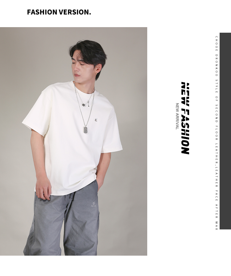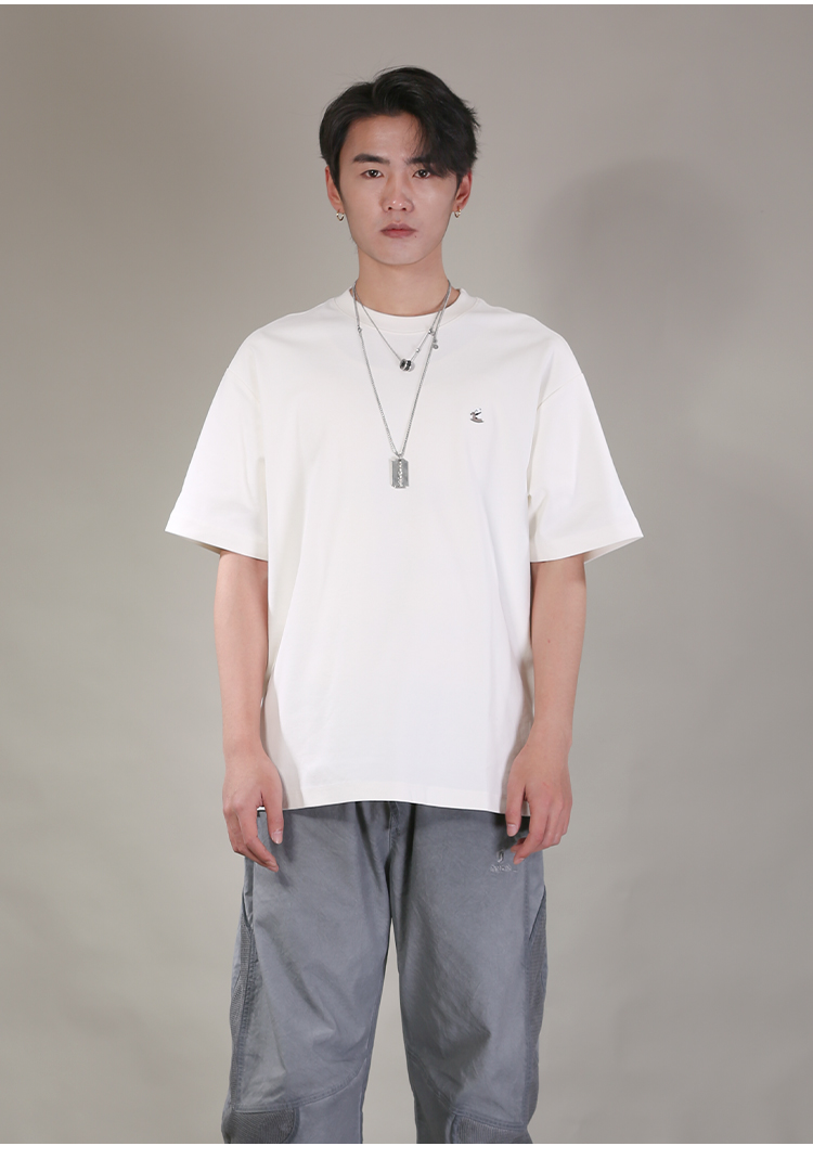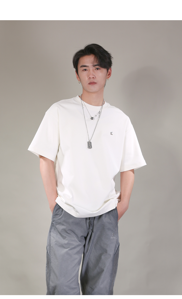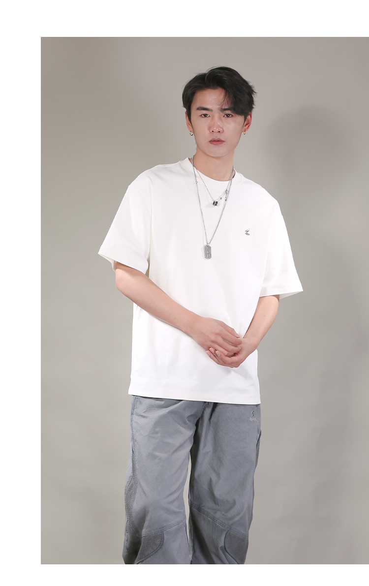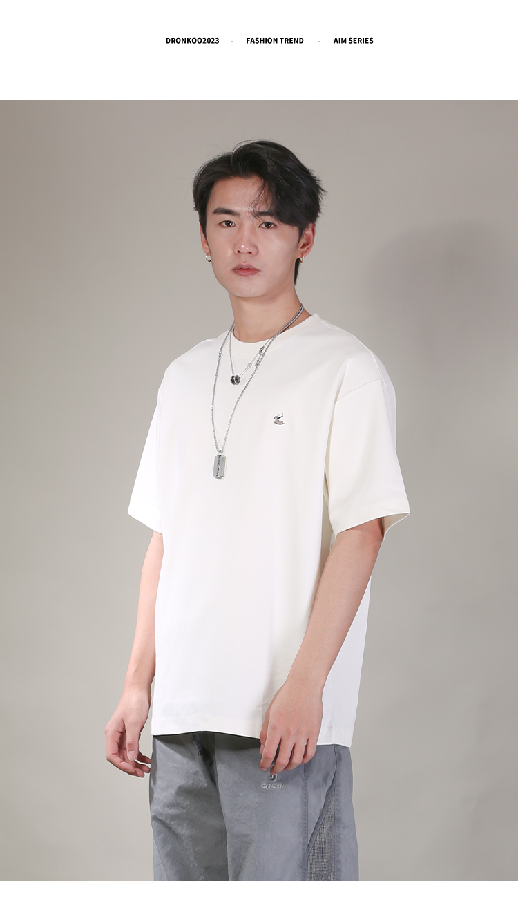 DRONKOO 2026 圆领左胸熊猫刺绣微阔短袖T恤